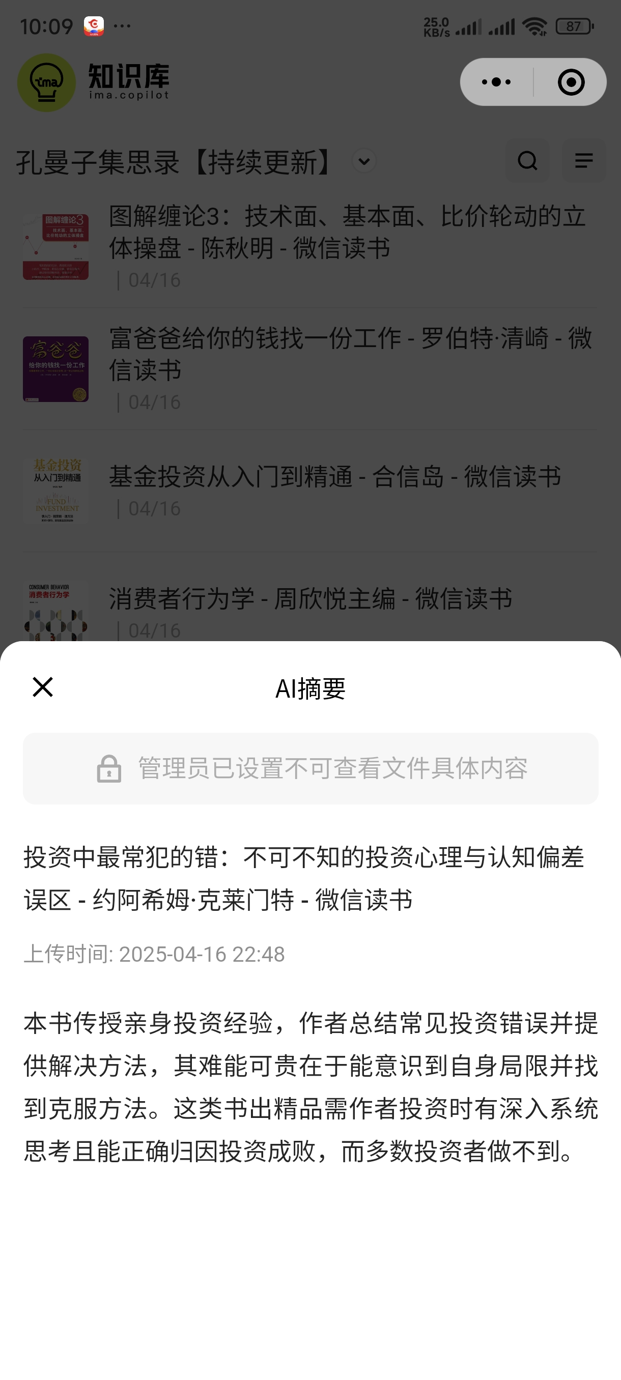 不好意思,”孔曼子集思录“这个知识库,只能通过基于知识库提问的方式来获取知识库内容。知识库也是创建者劳动的成果,如果直接允许查看和下载内容的话,只要几分钟就被复制了。如果复制者再坏一点,把孔曼子和其他老师的ID都替换为自己的名字,影响就更不好了。我这几天加入并学习了不少的知识库,基本都是这样设置的。