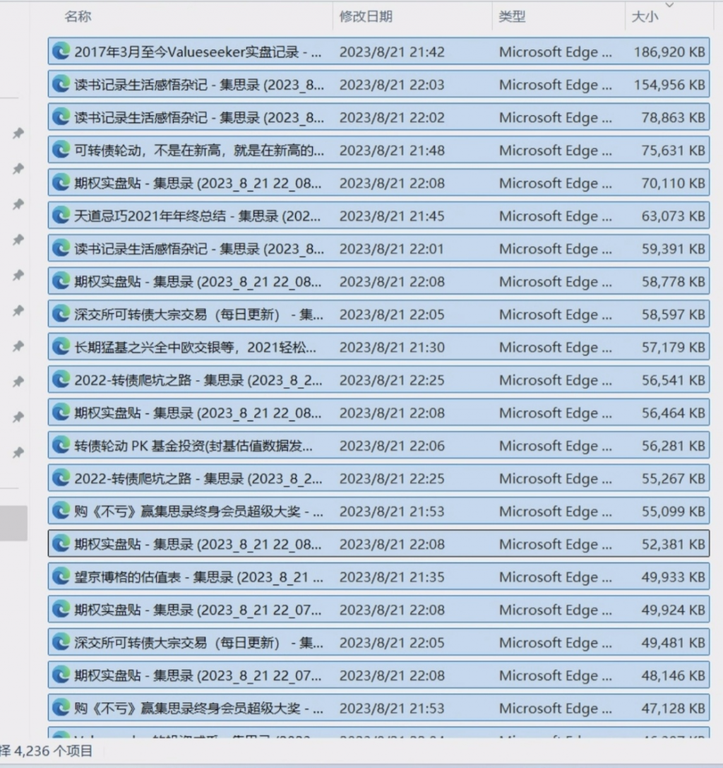支持进行抢救式挖掘。我在23年的时候下载了十几二十G的集思录热门文章,有一些现在已经删除掉了。本来我也想转化成md格式建知识库,还是放弃了。各个网站文章消失几个原因:1是因为敏感下架,2是发表者主动删除,3是平台经营不善丢失或下架。这三个原因前两个容易发生纠纷,但是有时候又没有办法区分是什么原因消失的。