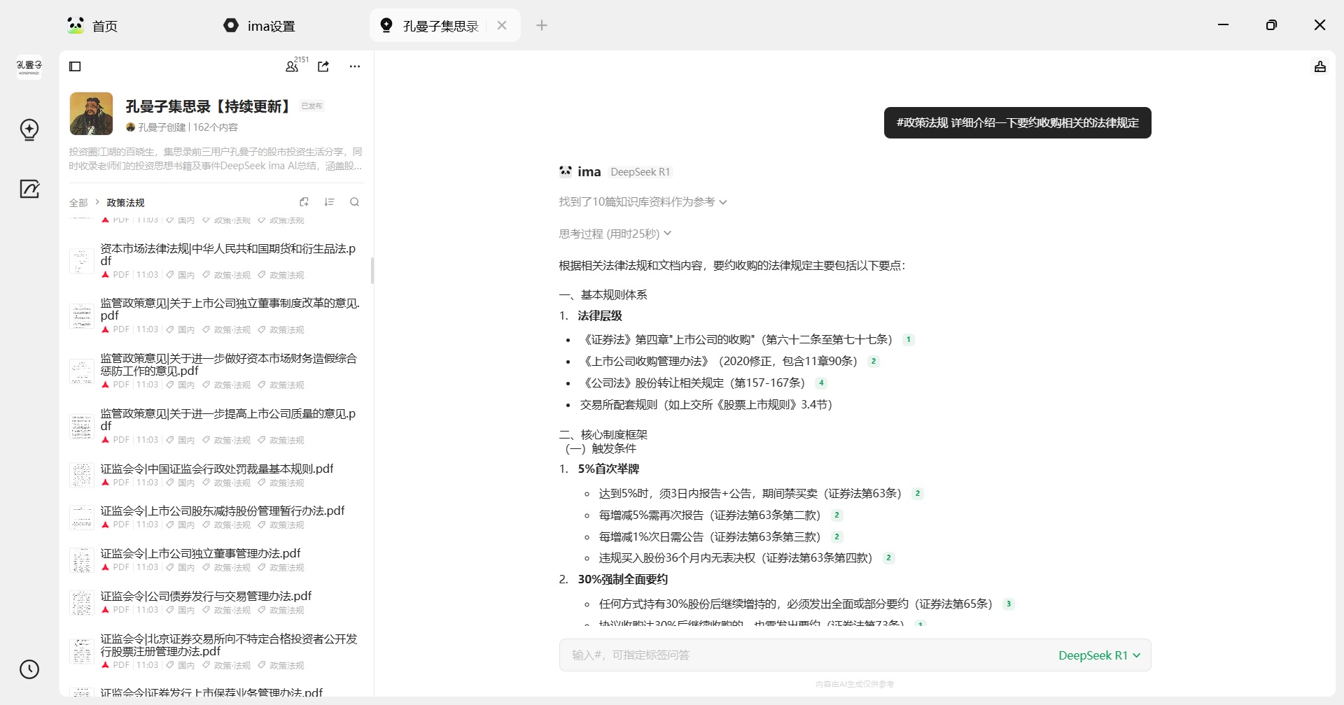 最近我使用腾讯集成了deepseek和混元的知识库ima copilot,颇有所得。
