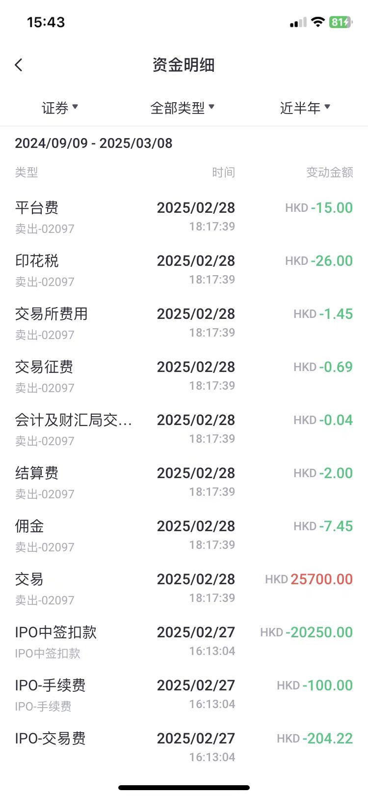 中了一手蜜雪冰城,暗盘卖出。算了一下手续费,居然有356.85港币。