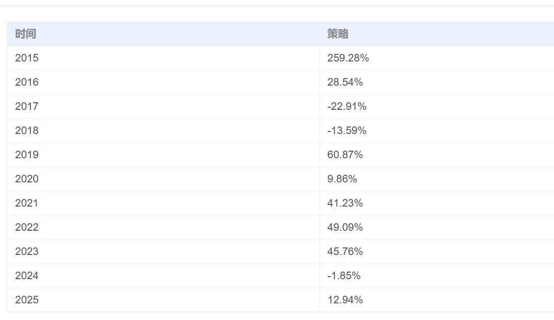 虽然其他年头的收益情况不错,但主要的收益来自2015年259%的超高收益率,2015年小盘股的疯牛行情再次出现的可能性还是很小的。