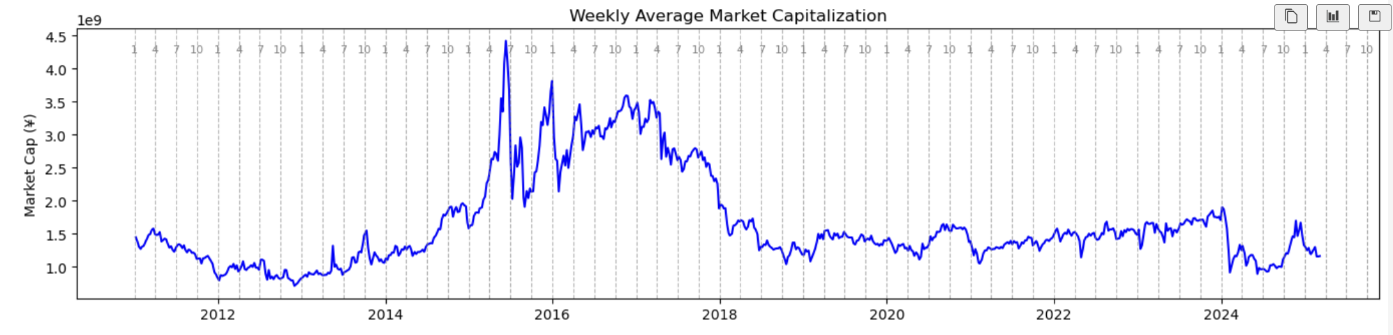 另一种会造成亏损的情况,则是微盘股市值中枢的整体向下漂移(全市场尾部股票的平均市值下降),这种整体下杀的原因有很多种,比如市场偏大盘风格(17、18),或者流动性趋紧引发的踩踏(24年一月),具体可以看下面这张图,对应的是每周持仓的平均市值,以17-18年为例,这两年中持仓的平均市值从约35亿下降到了10亿出头,对应了17、18两年策略跑输大盘,而且可以进行一个简单的估计:将平均的年化倍增1.35^2除以市值缩小比例3等于0.61,跟这两年的实际变化(1-0.23)*(1-0.14)=0.66接近