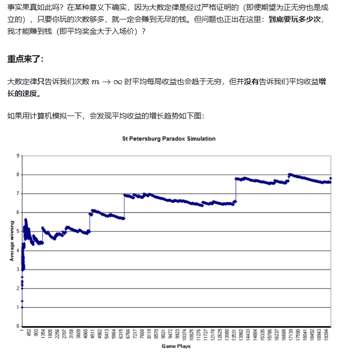 这题一定是错的,你那公式是不是每局的赚钱期望,而是无限次出反面的那局赚钱期望第10次赚多少呢,秘密在于亏钱是几何增长,而赚钱是指数增长,数学期望妥妥正无穷