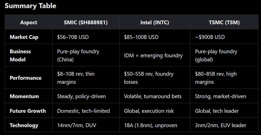 上面AI已经写的清清楚楚,另外还少了一个同样被你diss的samsung重要玩家。你这嘲笑intel,samsung的语气,跟b站上不明真相被带节奏的学生简直一模一样。有空在这当中老年键盘侠,没空重新问一遍AI,学点真正的knowhow?你要是看不懂英文就去找个英语老师先把英文学一学,文化水平不高就把文化课补一补。否则啥都说不出,等下又拐到DIY上面去了。也不知道当年电脑城奸商是坑了你多少钱,让...你这智商,是不是看不懂我问题?我再贴一次。这是第三次。