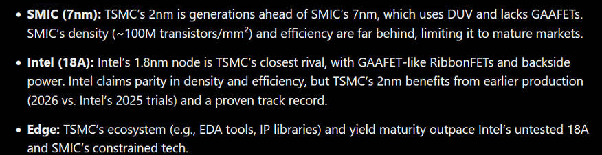 18a吹了很久了,良率不行。要是18a进展顺利,Intel董事会就不会逼着前任ceo基辛格辞职退休了。tsmc和intel的foundry部分本质不是一类公司。何况X86与arm的能效追求思路也不一样,密度库与性能库打磨方向也不同。