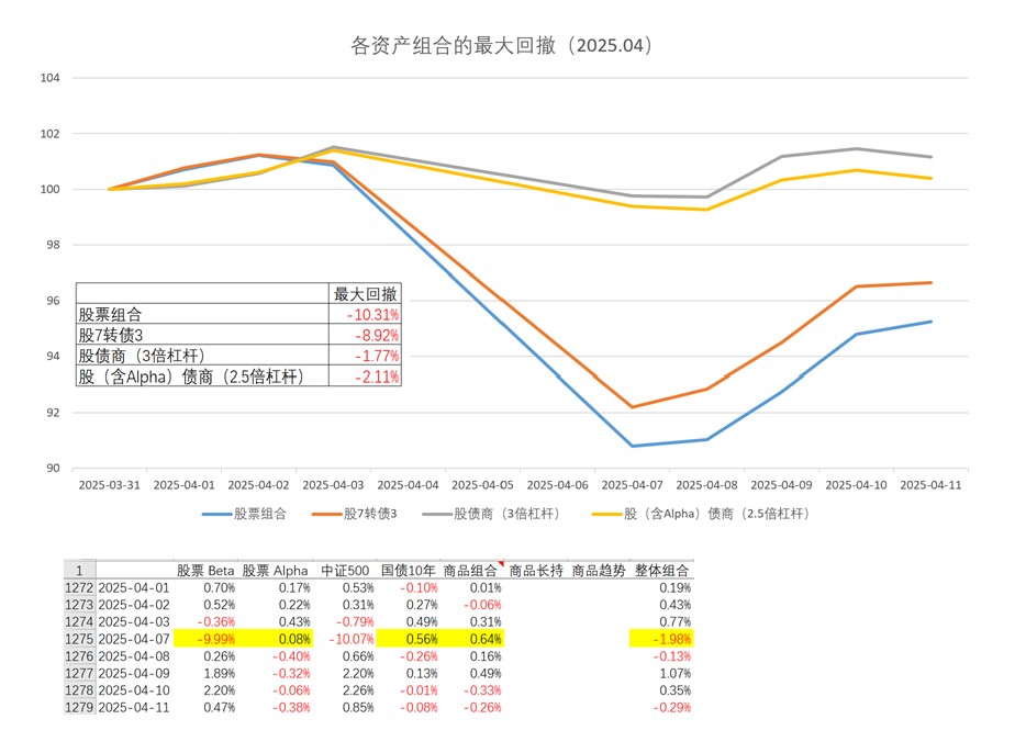 (2015年暴跌时:中证500 -47.8%、整体组合 -16.2%)