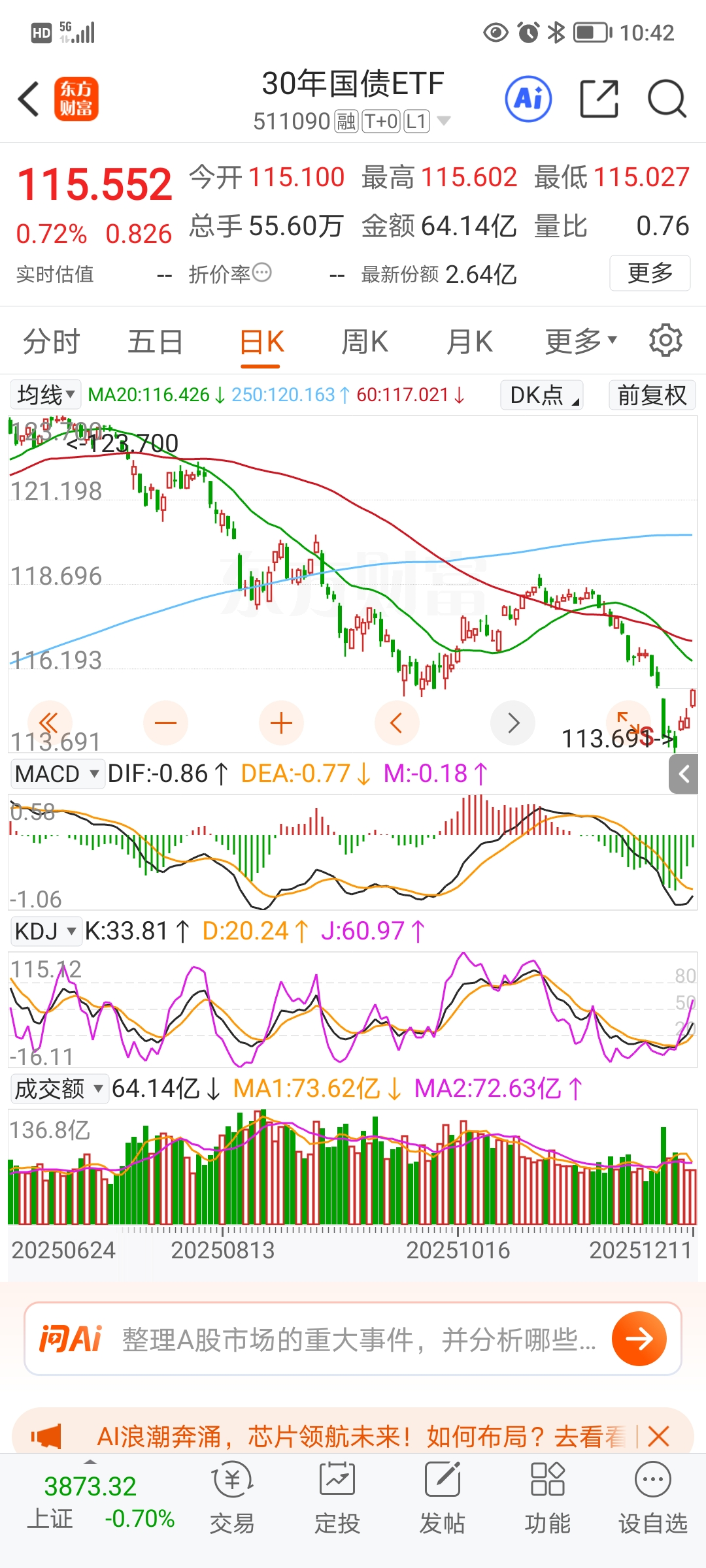 国债etf需要选择周级别观察窗口来操作,需大的耐心程度!