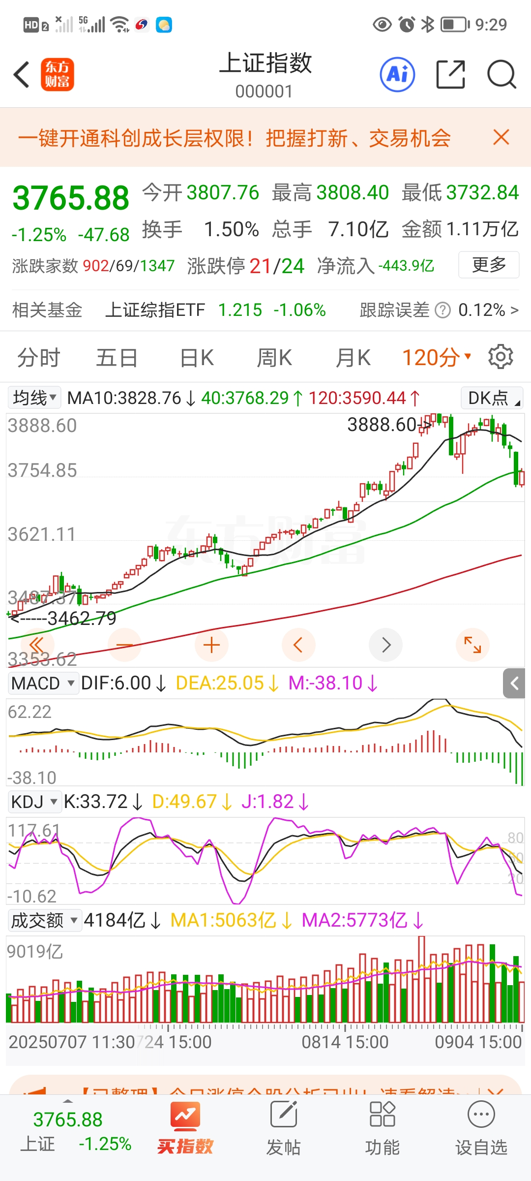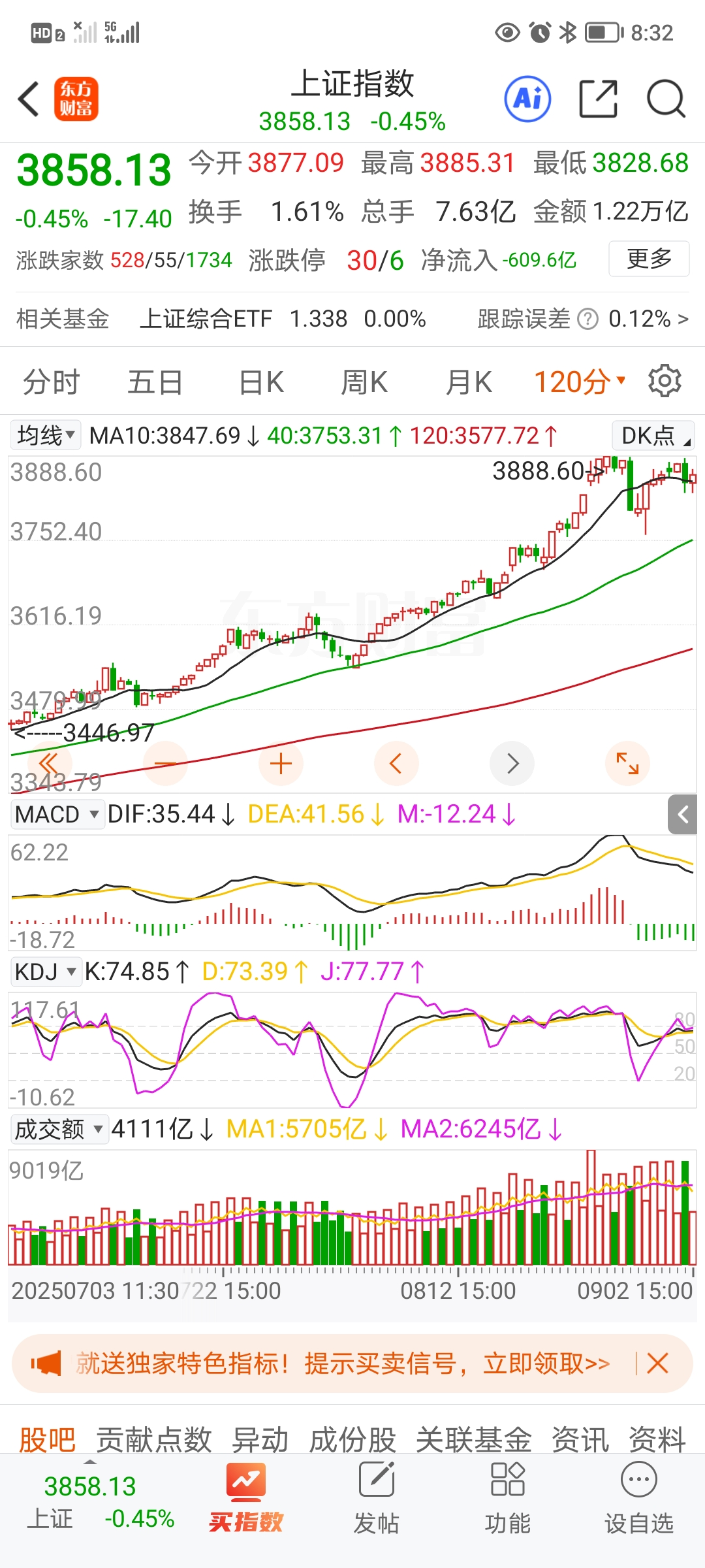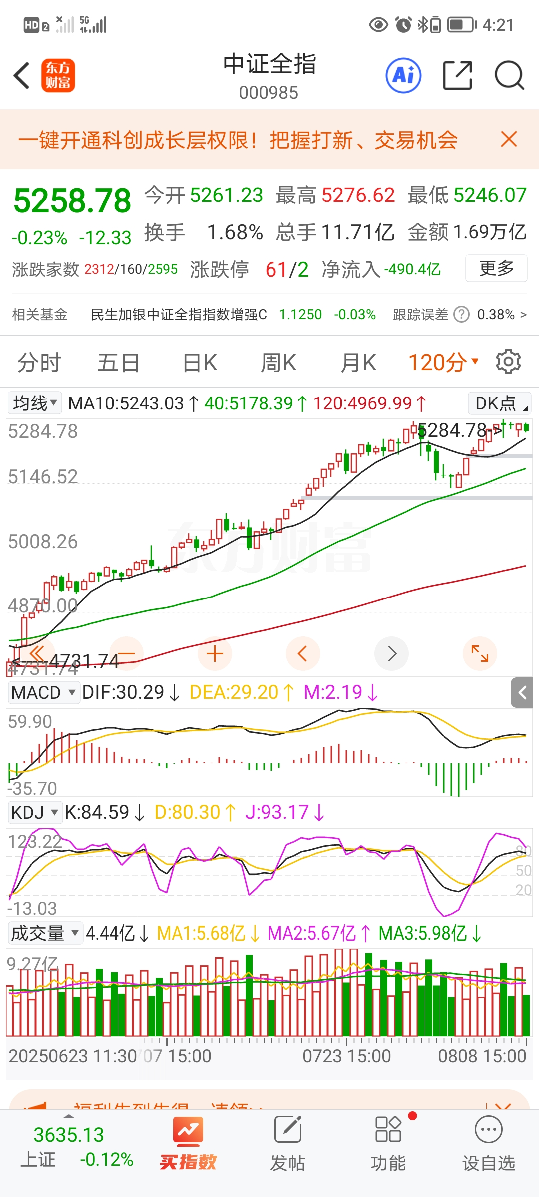 从日K线分析,MACD这种走势如果DIT不能迅速上穿DEA,指标将向零轴迅速靠近,此阶段是结构回调往往是股价迅速下杀最厉害的一段,也是最磨人阶段。但从K线结构来看,当MACD死叉后并未迅速大角度下调,整体结构走向横盘或小角度回调。今天看到指数创新高,这是一个好的亮点,进一步说明市场还是挺强,只是涨的多了,需要阶段性调整调整。