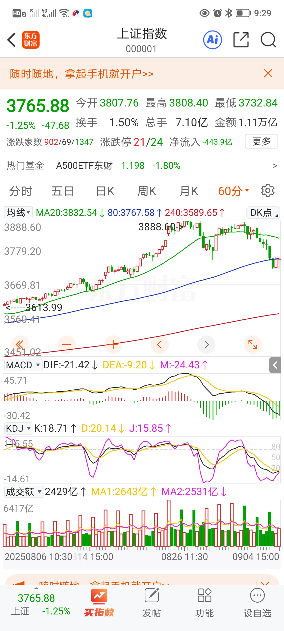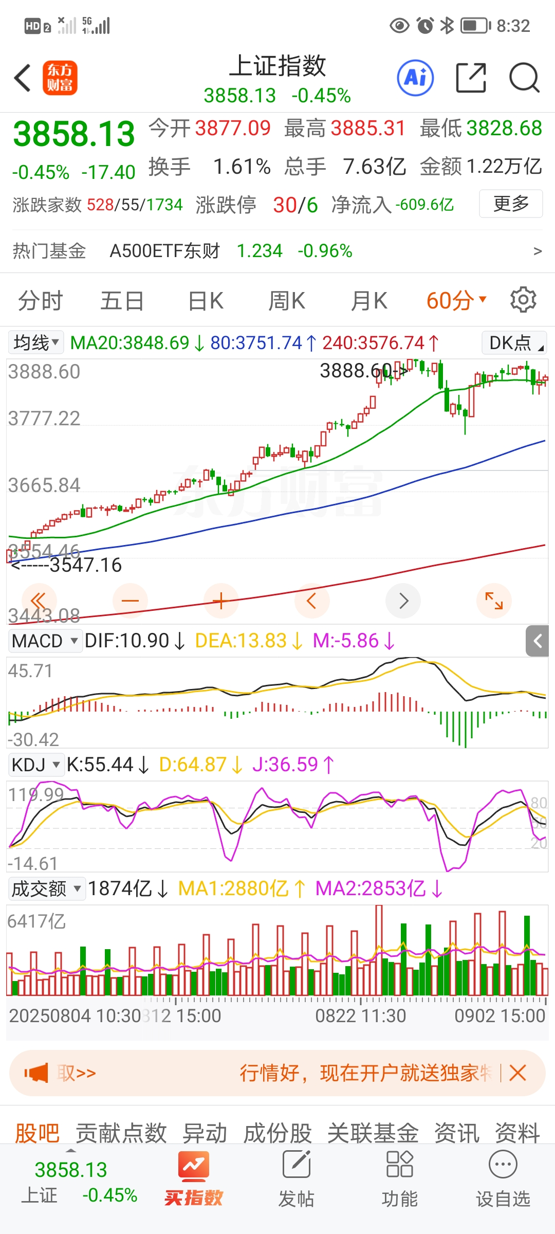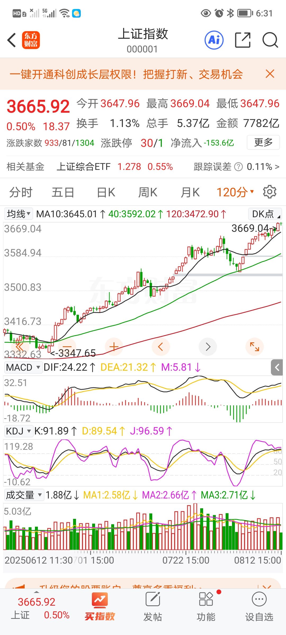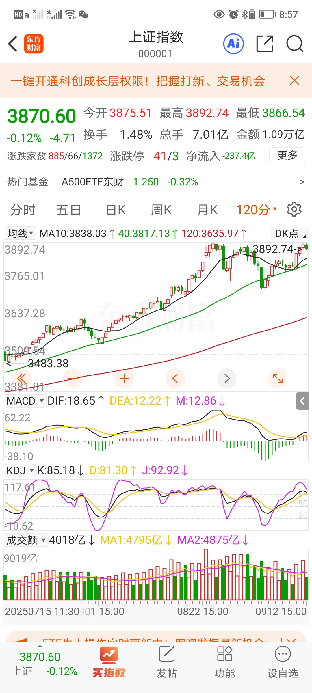 从日K线分析,MACD这种走势如果DIT不能迅速上穿DEA,指标将向零轴迅速靠近,此阶段是结构回调往往是股价迅速下杀最厉害的一段,也是最磨人阶段。但从K线结构来看,当MACD死叉后并未迅速大角度下调,整体结构走向横盘或小角度回调。今天看到指数创新高,这是一个好的亮点,进一步说明市场还是挺强,只是涨的多了,需要阶段性调整调整。