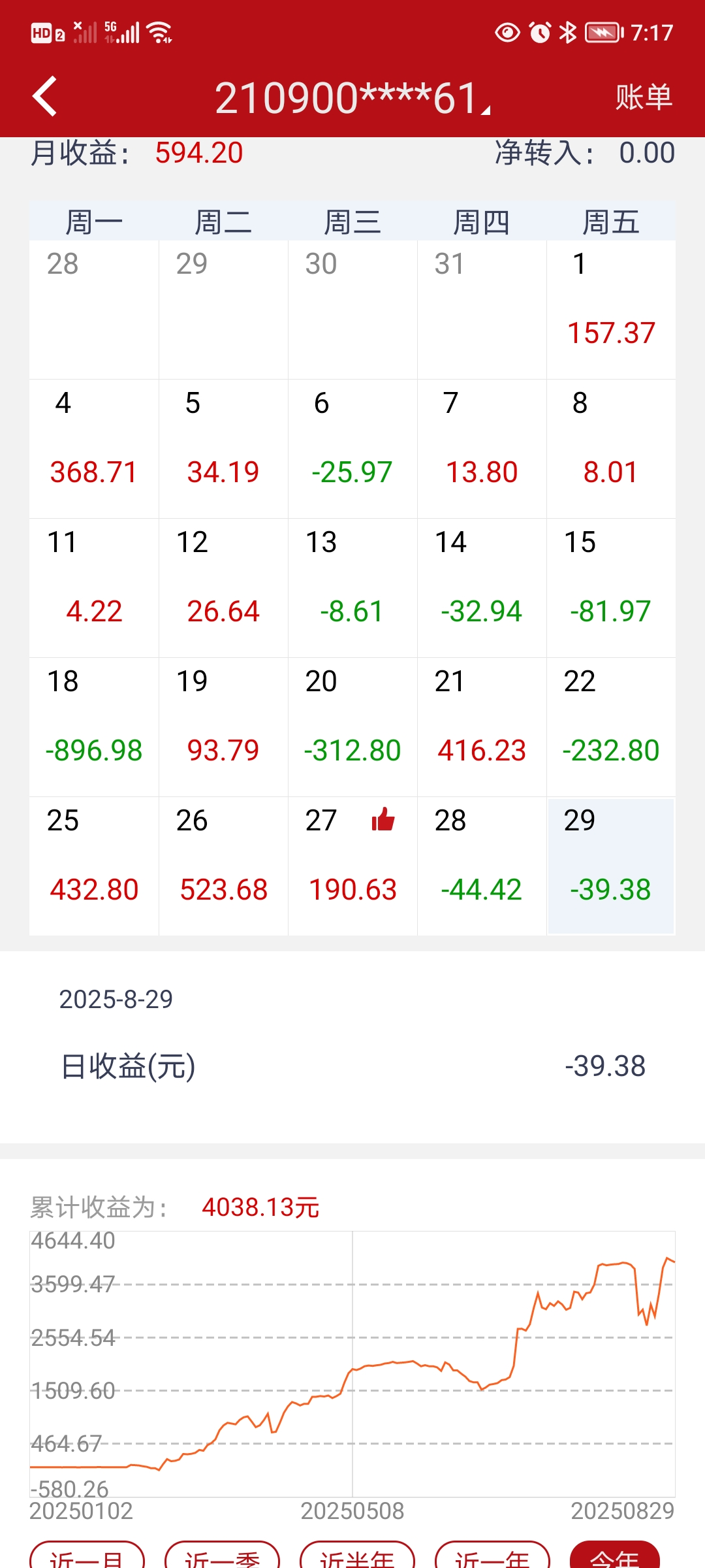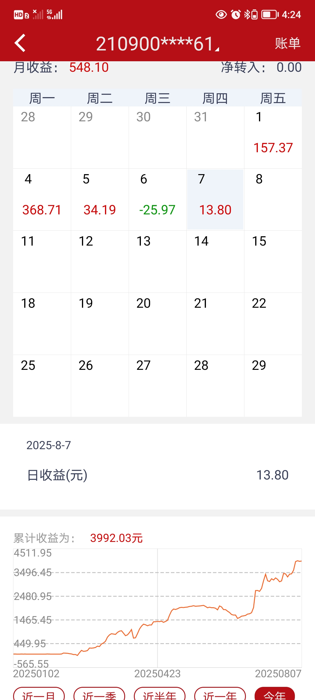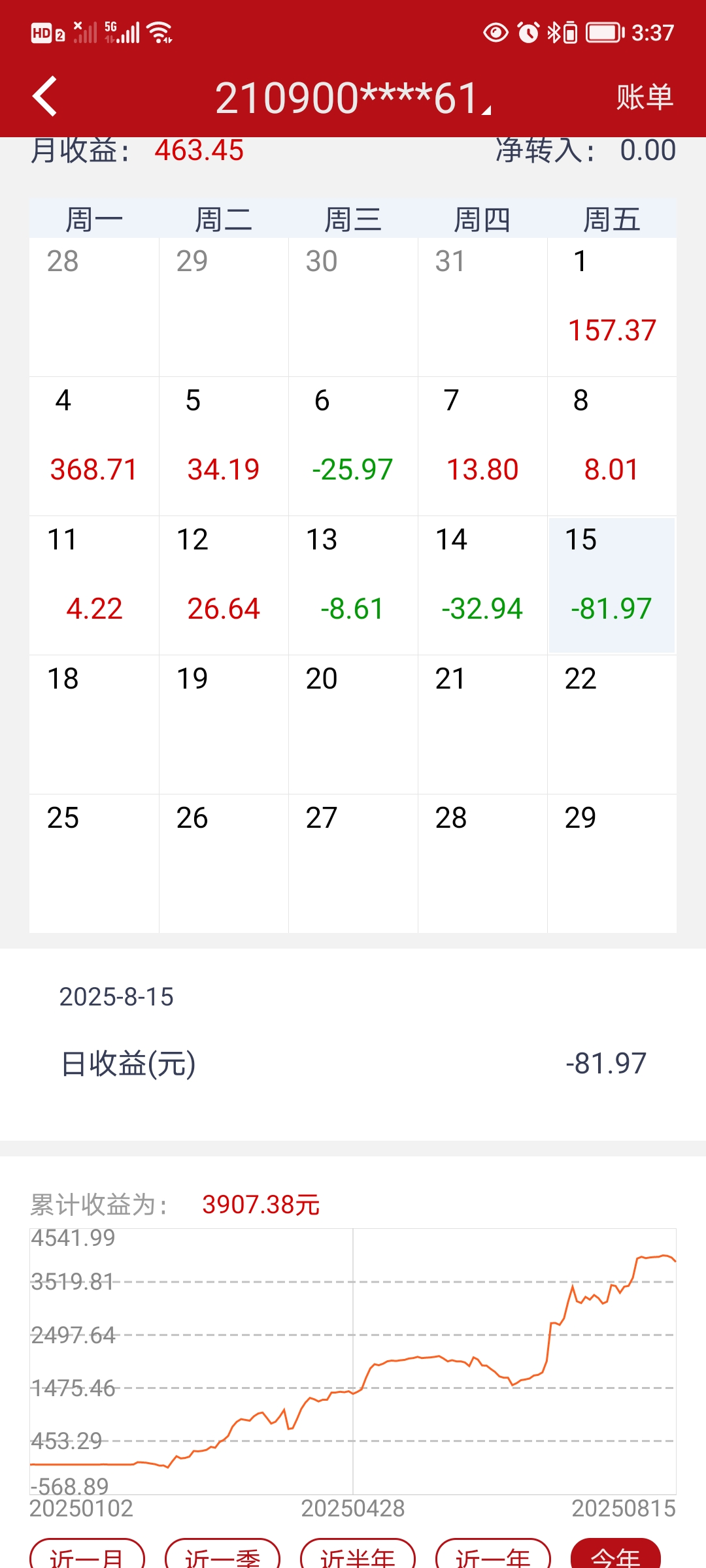 买入后虽小有盈利,但随后周一开盘随A股猛涨债市跳空低开低走,当日整体资金回撤比例最大达到1%。当时买入时考虑到国债波动相对个股波动不是很大,不至于整体回撤很大,所以满仓了国债。