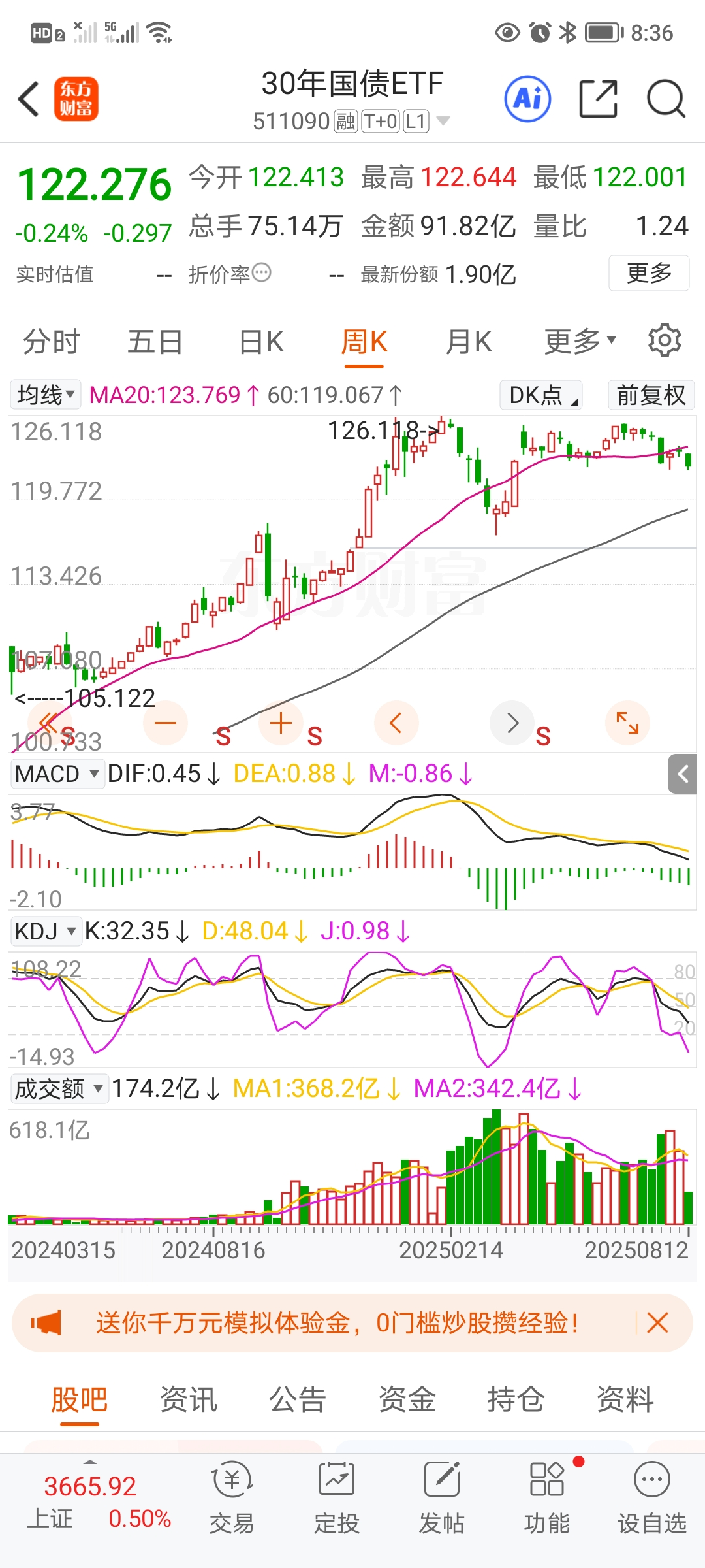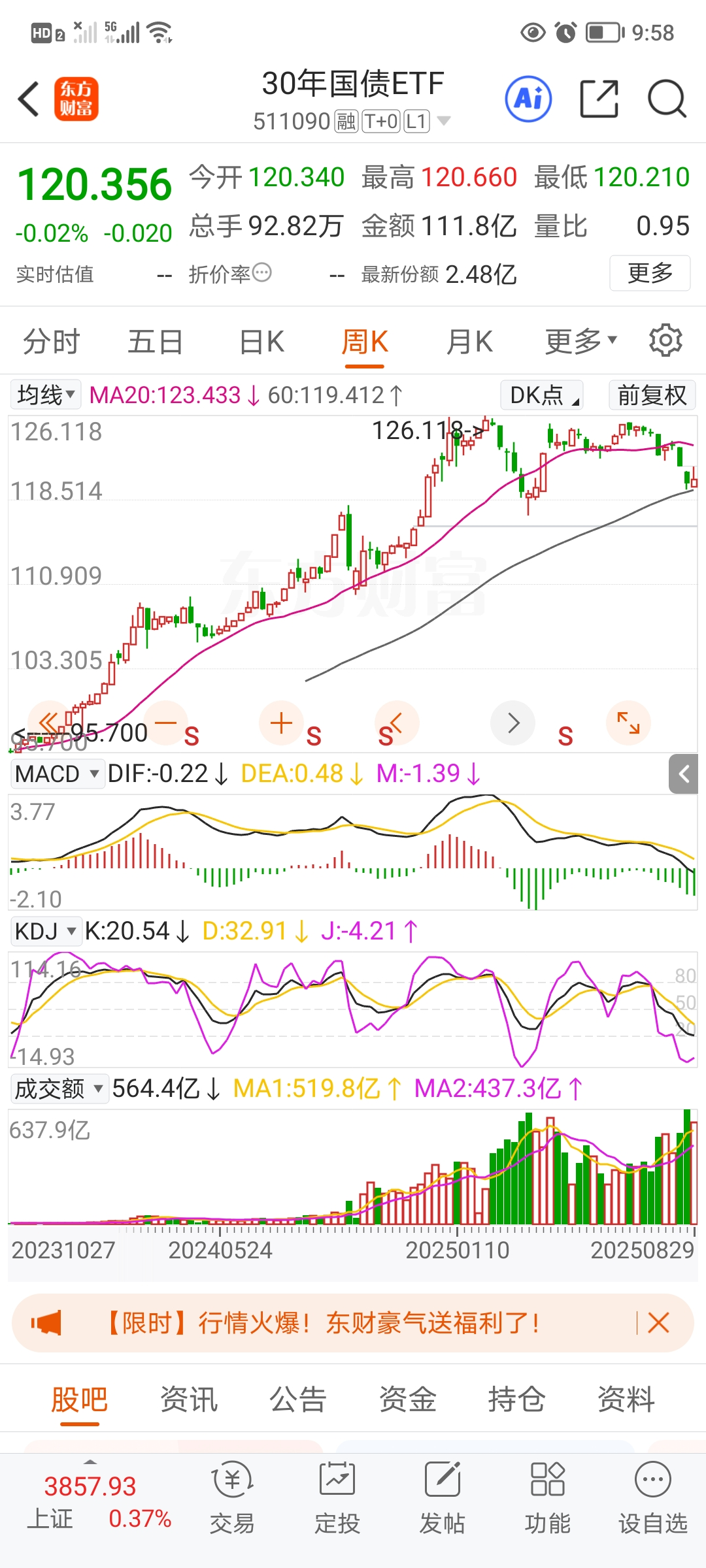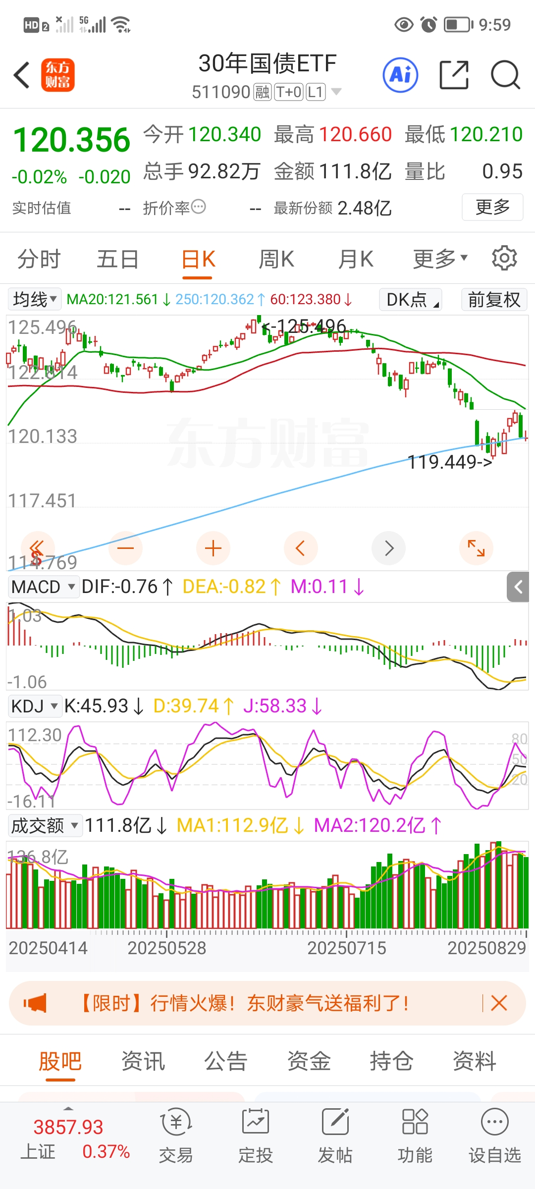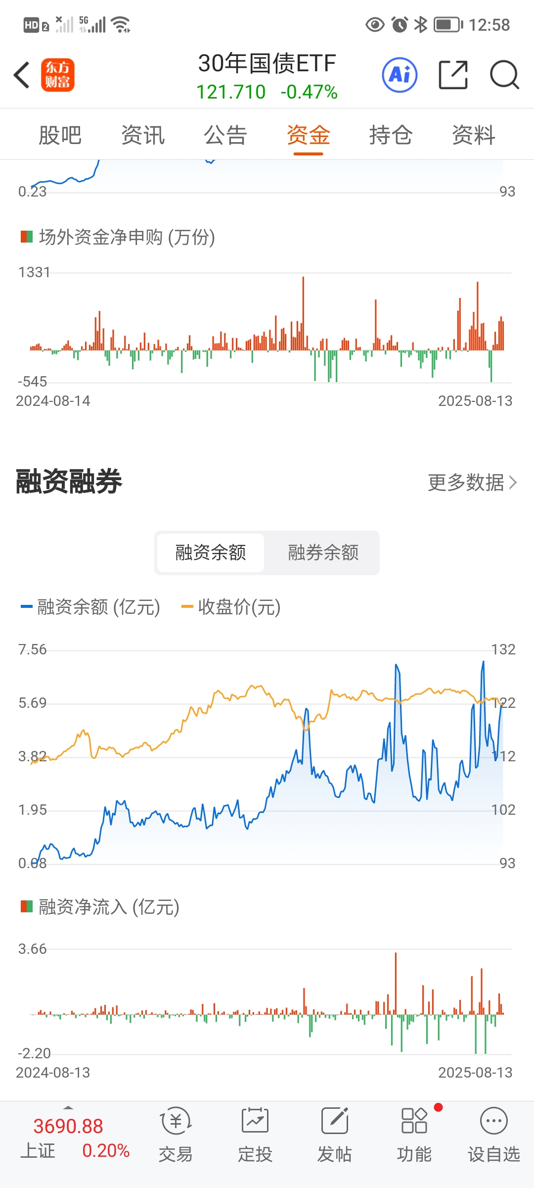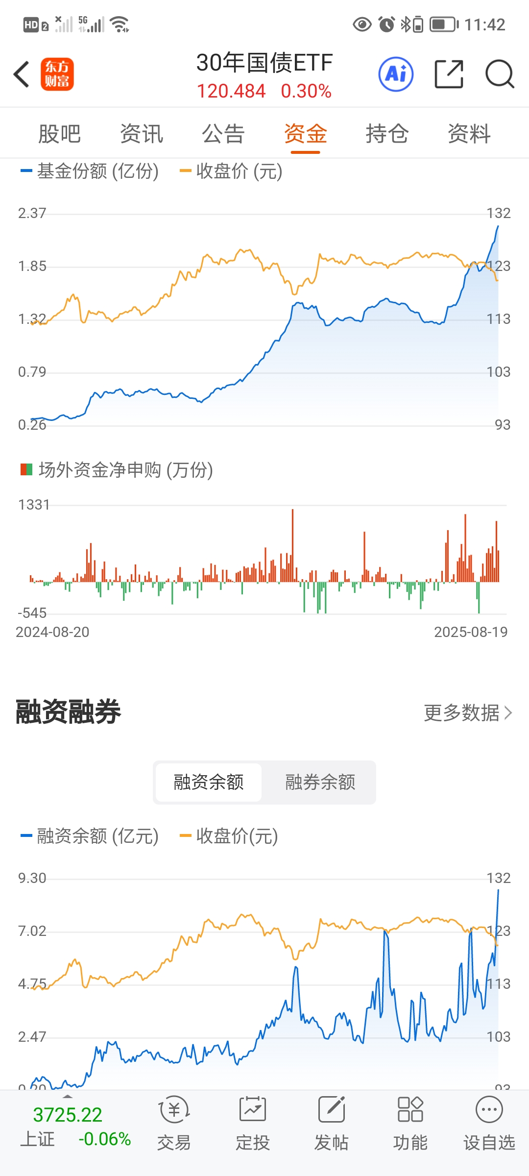 为什么买入?当时看到小明哥公众号提到30年国债ETF,他提到25特国02收益率突破1.95%考虑进场,突破2.0%他将ALL in,同时自己也根据小明哥的信息查看了24特国债01和25特国债02K线走势以及30年国债ETF走势图、申购量、融资金额,当时判断24年特国01正处于年线附近,25特国02正处于底部筑底阶段,相关MACD即将形成背离结构,例外ETF申购量和融资金额屡创新高,说明资金比较看好30年国债,所有判断在国债在年线附近应该是比较安全的,相对应胜率及盈亏比都是比较高的,于是就买入。