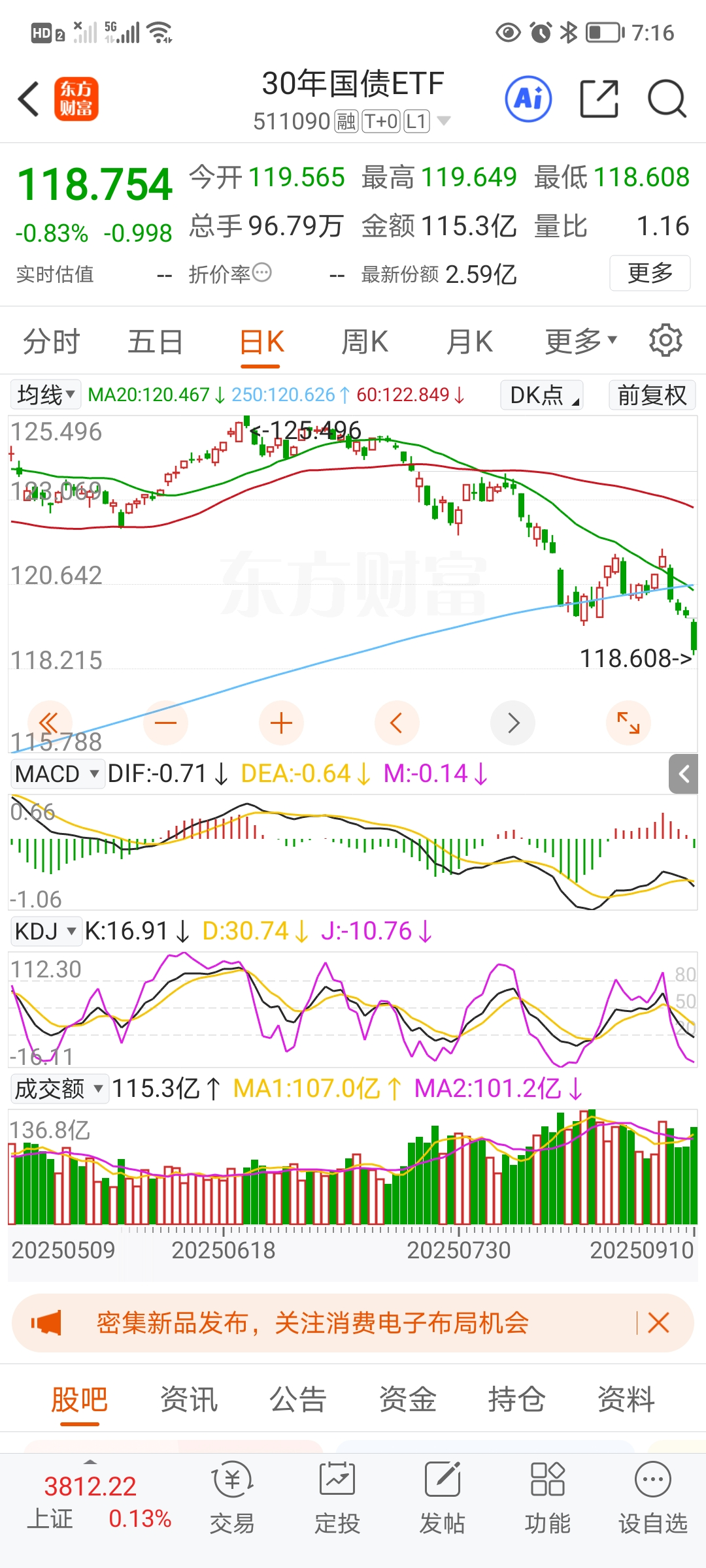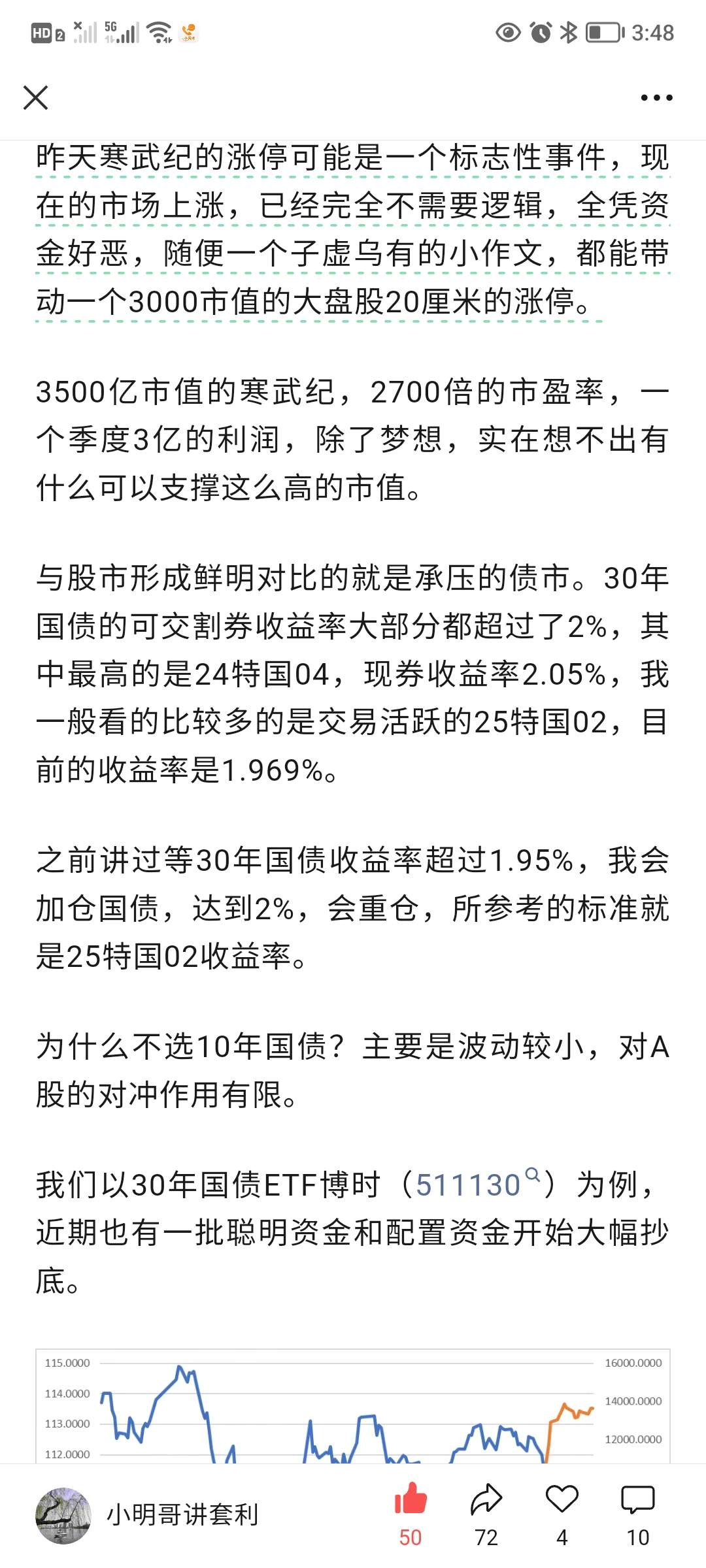 买国债亏麻了还好,买的价位不算高,只是买了后利率没下调,价格没立即涨,反而收盘后国债收益率还在往上涨,所以要对买入的国债etf复盘下,坚定下信心。