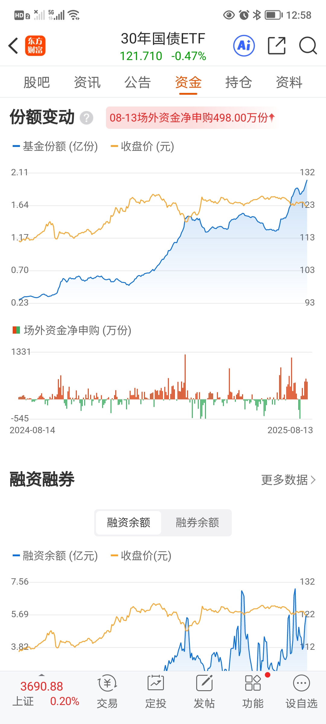 央行多次强调避免长端利率过度下行(与经济复苏、汇率稳定目标冲突)。此次操作虽释放宽松信号,但结合2025年3月央行对30年国债利率的“纠偏”(引导其从2.43%回升至2.51%),长债收益率大幅下行空间受限,ETF价格或呈震荡格局。
