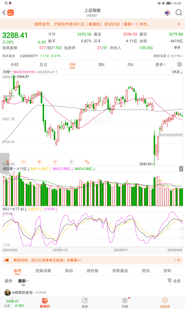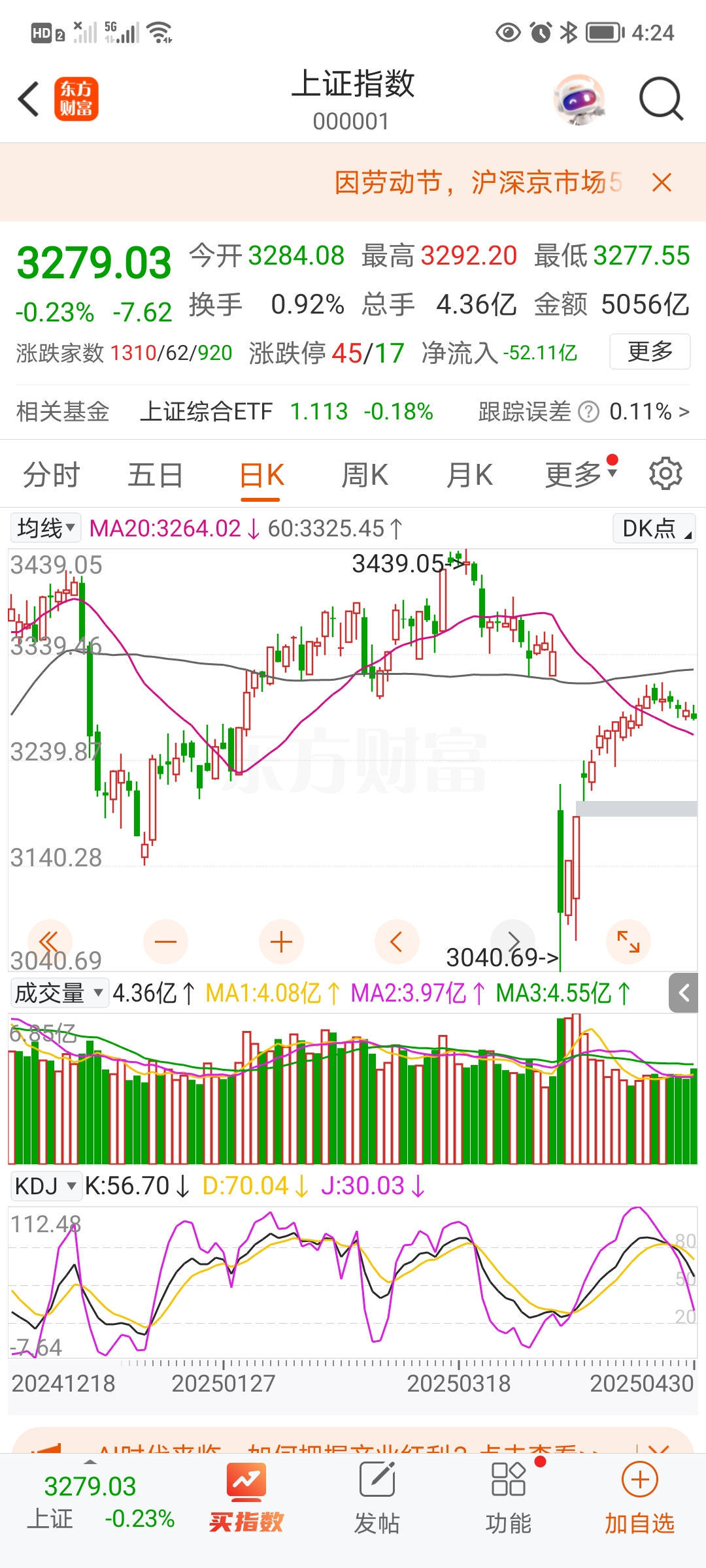 4.12号周末,这个星期好多事都集合在这个星期,现场的消防验收及股市的大震荡都集在这个星期里。回忆下这个星期,写下感想。过完清明,看到外围的市场大跌,顿感周一情况不是很妙,其实在上周四时大盘所有预感,在上周四时资水老师及寂寞青山老师已经在公众号已经对大盘的疲软有所提式,预示大盘调整来临,自己的操作体验也感受到了大盘的滞涨,马上转入大盘的回调,只是没想到经历清明三天时间外围市场的反应比我想想的还要...对冲就是搞笑,关键还是【关键的择时性的赌博】