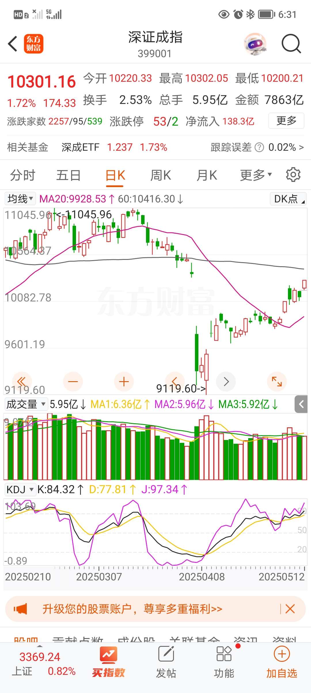 受早上政策刺激,大盘高开,上证指数比预期的强,原预计可能就冲到60日均线止步,哪知早上高开过度,直接站上60日均线,这是强的表现,而且一整天行情里盘中就回踩了下60日均线,尾盘继续上冲;深成指数及创业板指,表现的相对弱。短期判断上证仍还有上涨动力,深成及创业可能需要调整。