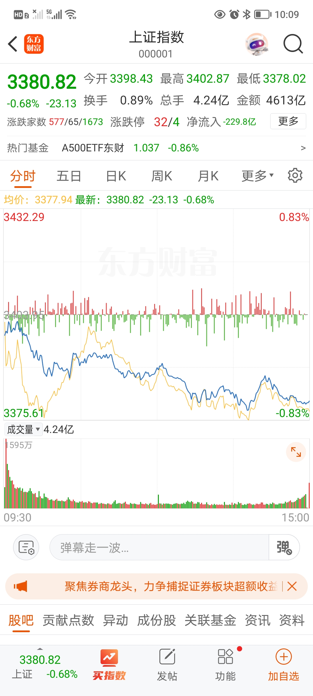 上证指数本周走出一根缩量上涨阳线,短期来看上方空间有限,上涨动力不足,3400附近是一道关卡,谨慎做多;
