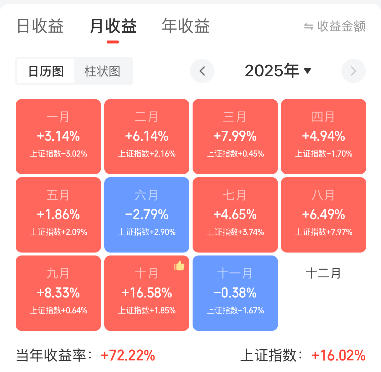 年度收益月度收益双双创了新高,周五给自己加了一个大鸡腿。