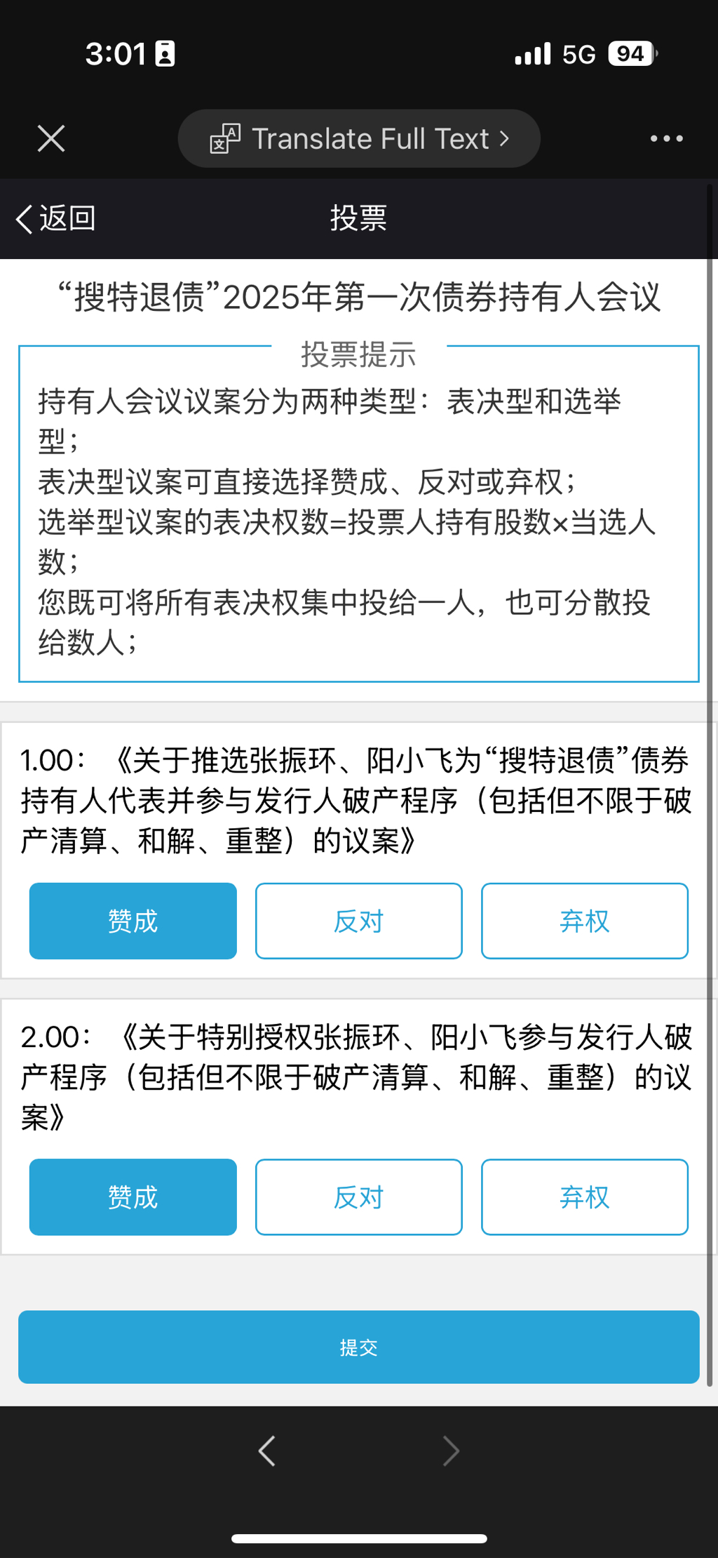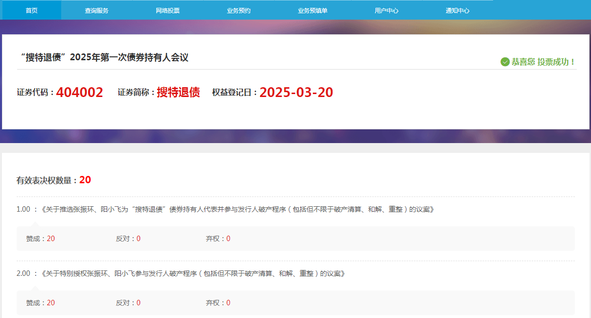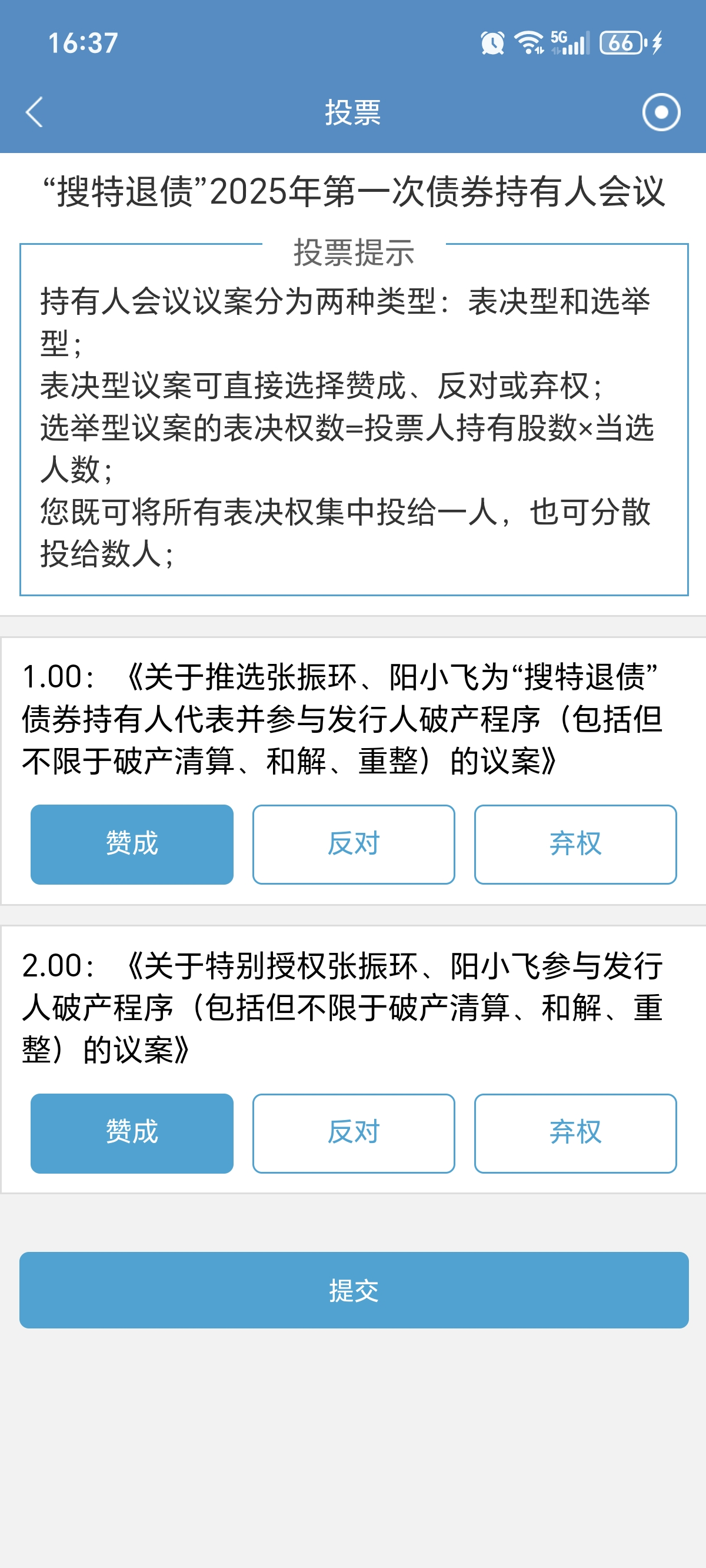 投票。当然投票之前要先去中登注册账号。如果有账号的可以直接投票搜特转债3月27日持有人会议投票时间与投票方式: