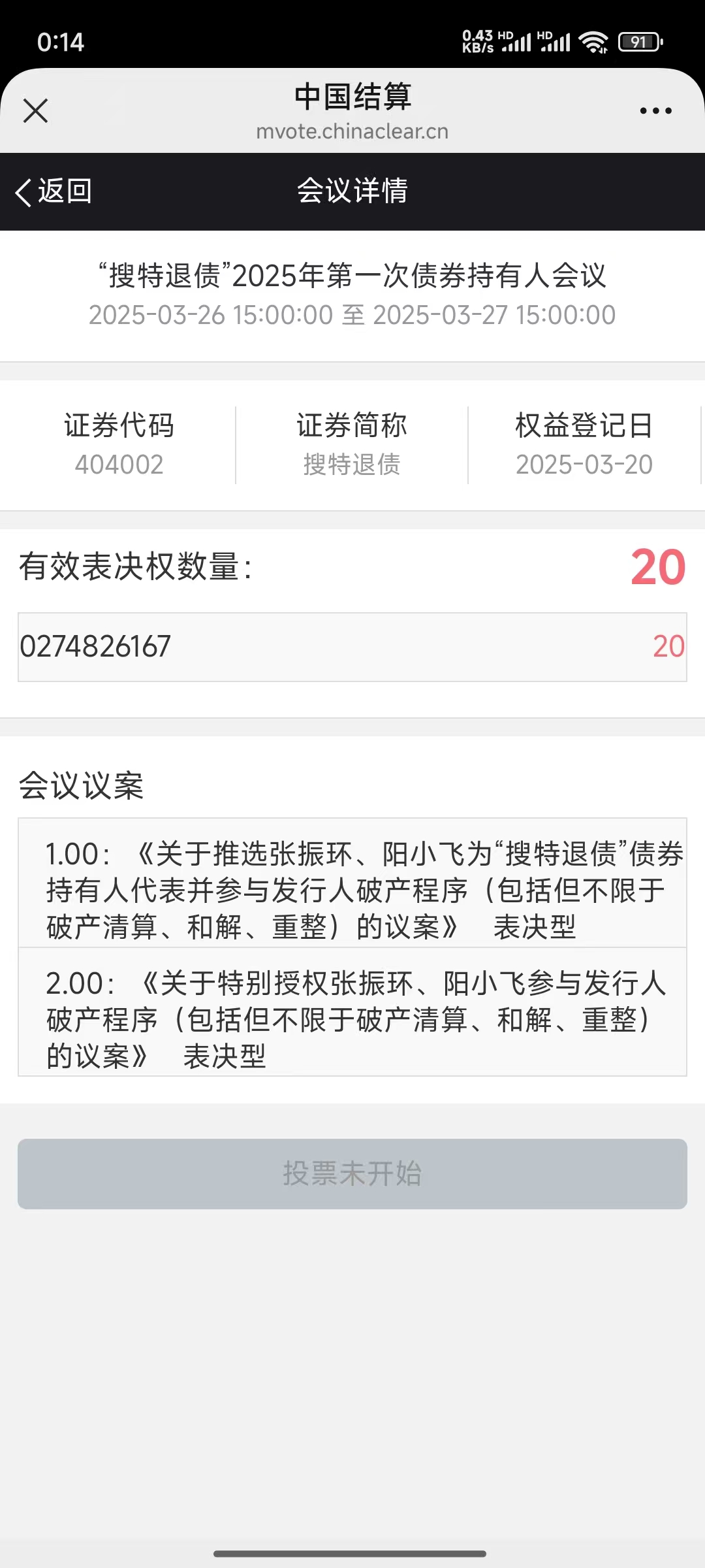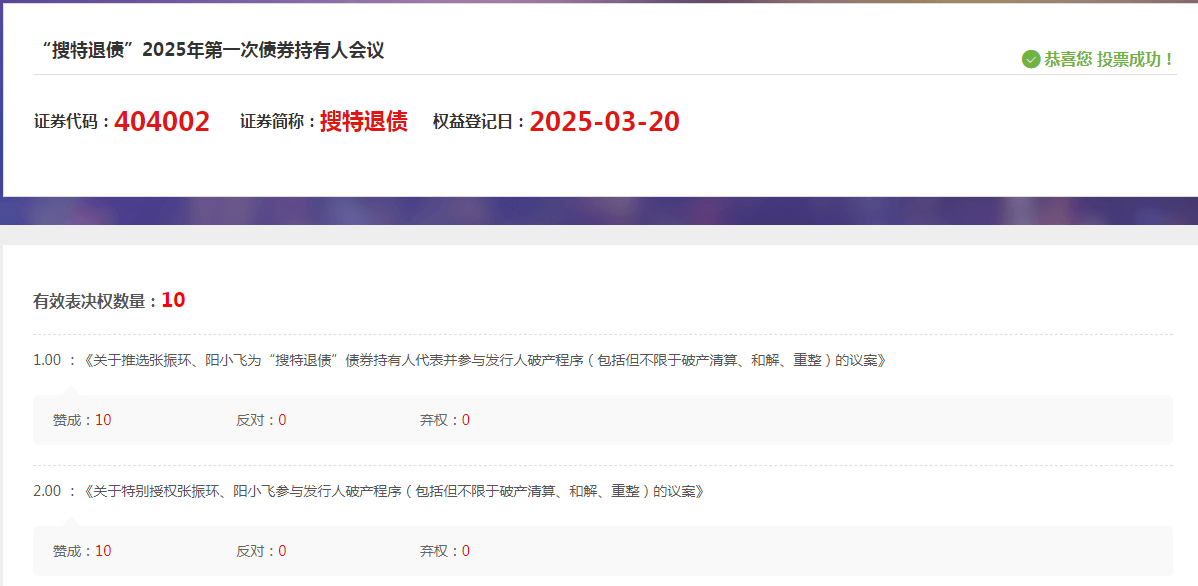 一旦大家团结起来,以后不可能再被 一债会投票这种 “会议须知”的“默认推定”、强煎民义!对后面破产清算中搜特转债3.5万持有人集体维权有重大帮助!