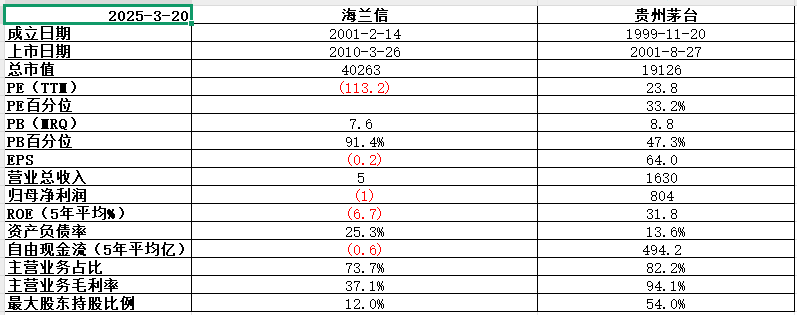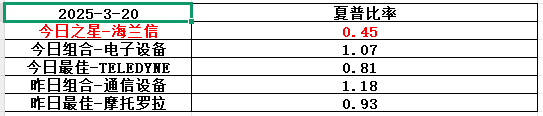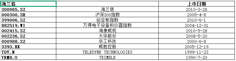 海兰信,基本面没啥亮点,历史表现一言难尽,目前估值还高,建议回避。整个电子设备行业历史表现优异,波动不算太大,综合夏普比率颇为诱人,建议关注,全球市场看TELEDYNE,大中华市场看海康威视。(注:夏普比率越高越好)