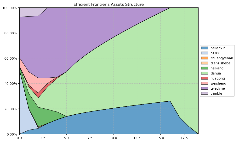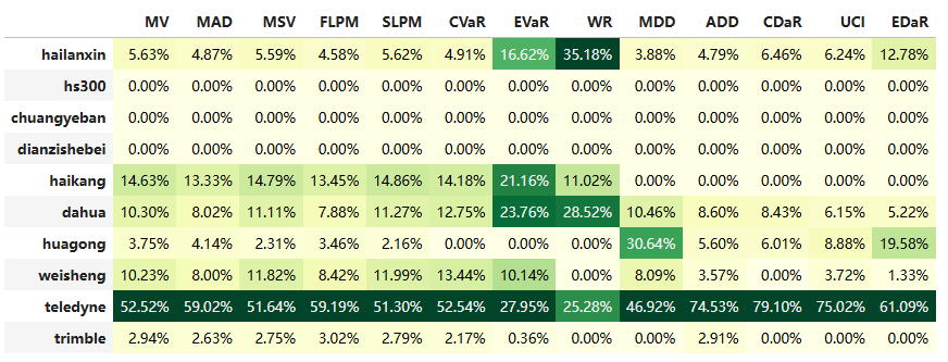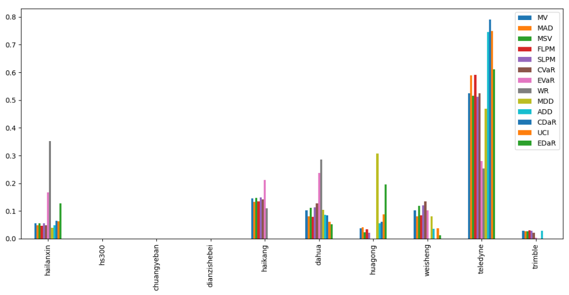 如果换成其他约束,系统给的配置比例也大同小异,基本是在海康威视和美股的TELEDYNE之间做取舍了。(注:占比越高越好)