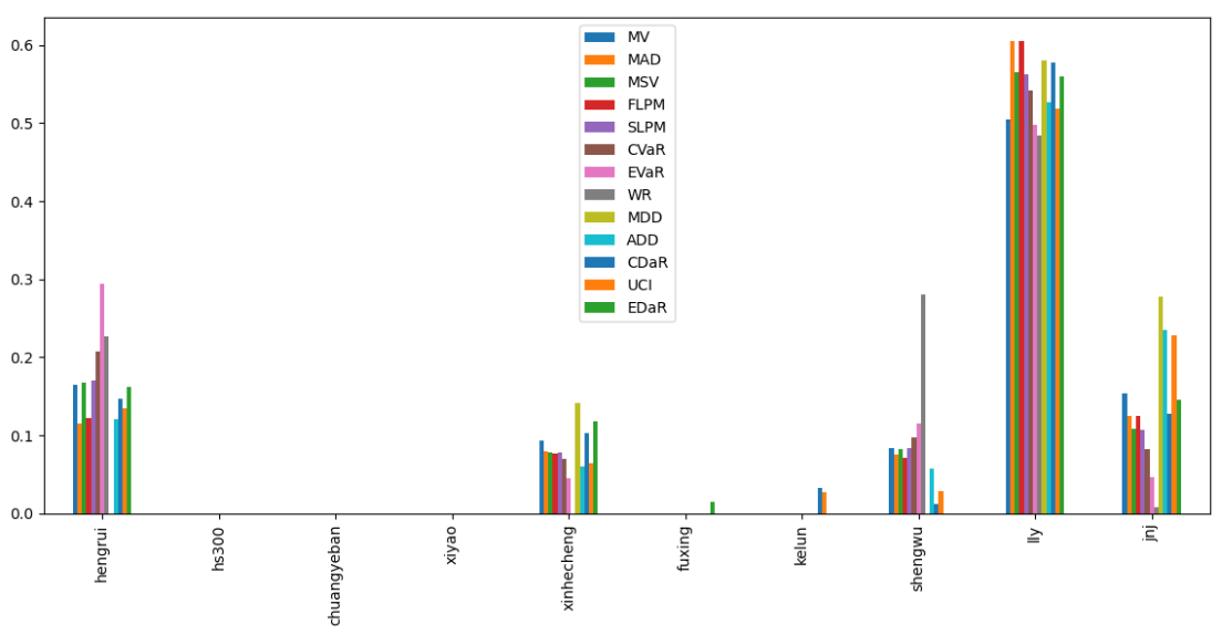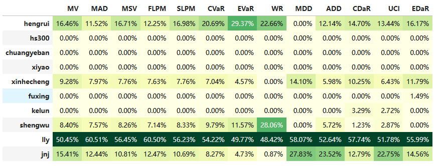 如果换成其他约束,系统给的配置比例也大同小异,基本是在公司和美股的礼来之间做取舍了。(注:占比越高越好)