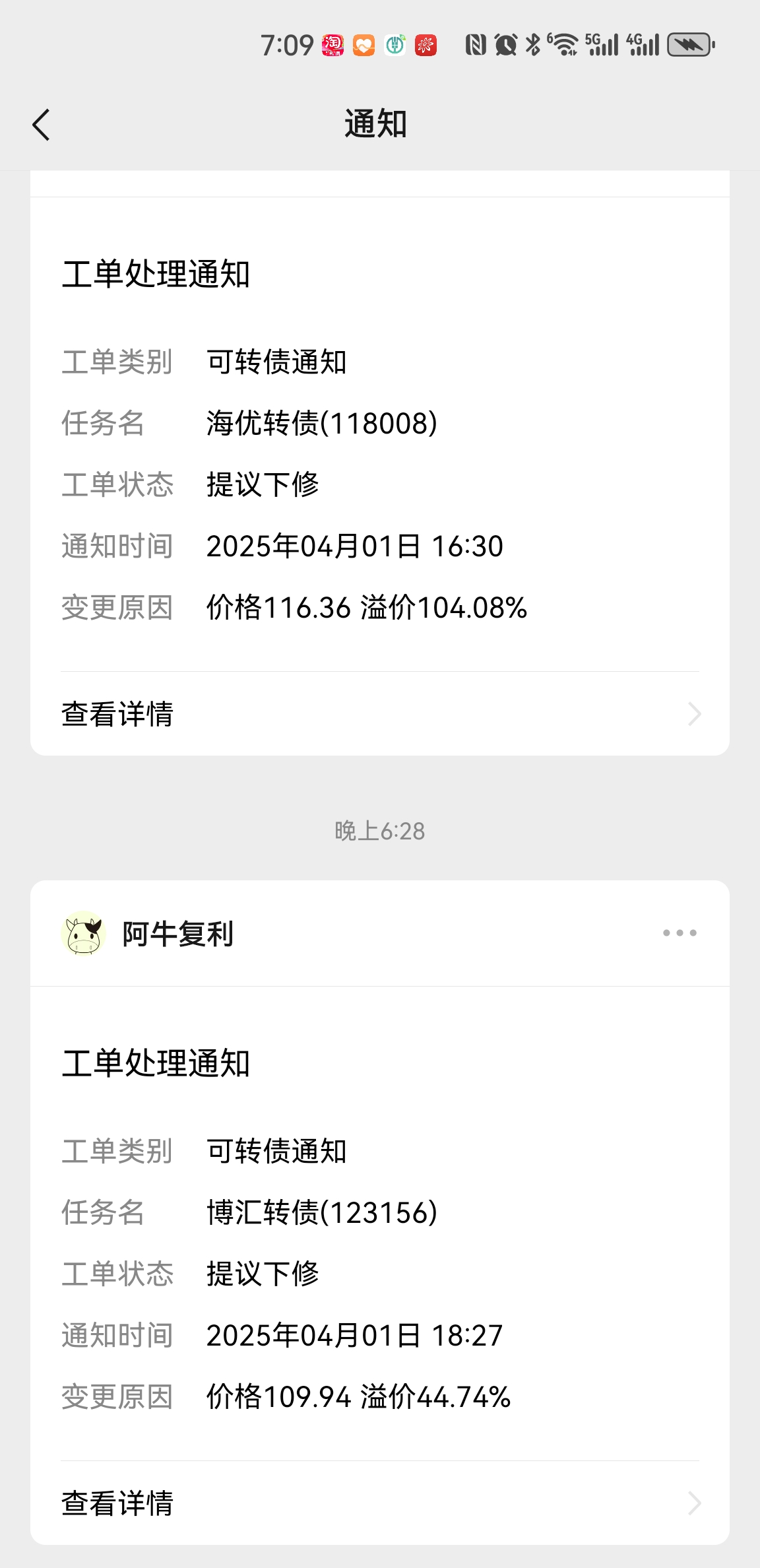 转债全天成交了605亿,指数上涨了0.47%,A股成交了11531亿...下午又回落了,顺势回了点 泰瑞 金现 等前高出品种,全天买卖差不多,成交都不太多...哭着又减了点聚隆,也不知道这货强赎不强赎,看着只差一年多到期的楚江,还顶着3个多点的溢价在涨幅榜前列,我TM太胆小了...排了一天的队也没买到中航产融,为了1分钱给它较劲了一天,我也挺猥琐...中国核建没人砸也不维持涨停,2个点的溢价叫人...