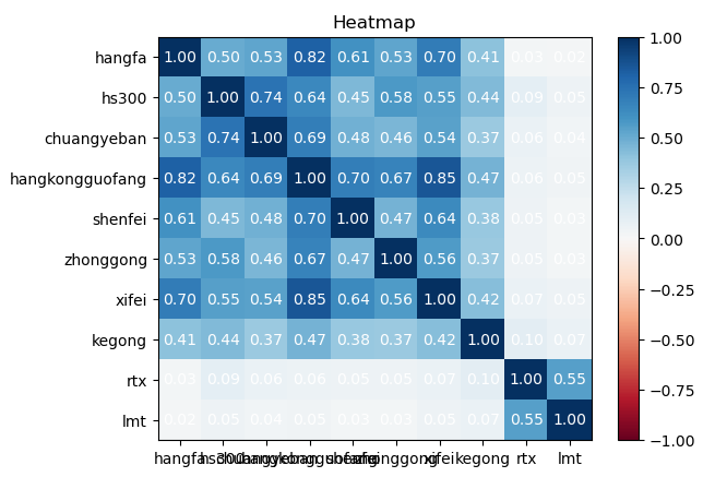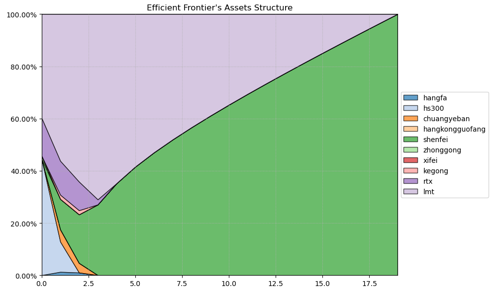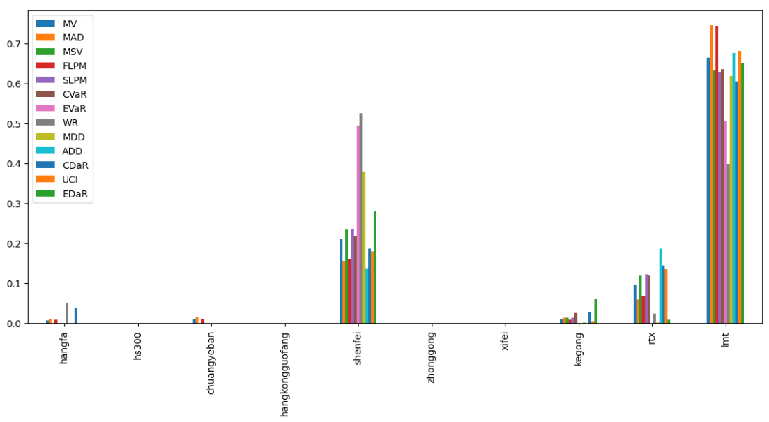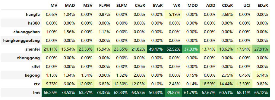 如果换成其他约束,系统给的配置比例也大同小异,基本是在中航沈飞和美股的洛克希德马丁之间做取舍了。(注:占比越高越好)