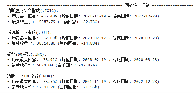 附图,近10年内美股4大指数回撤数据(表格内历史是10年内历史)