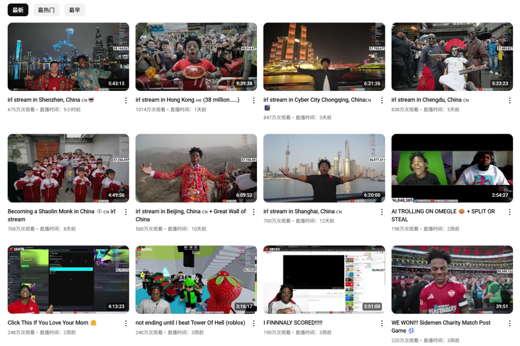 在油管上的直播场场热度拉满