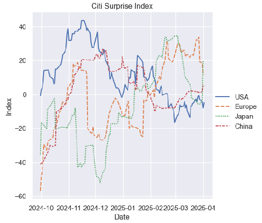花旗经济意外指数:日本走强明显,中美边际反弹