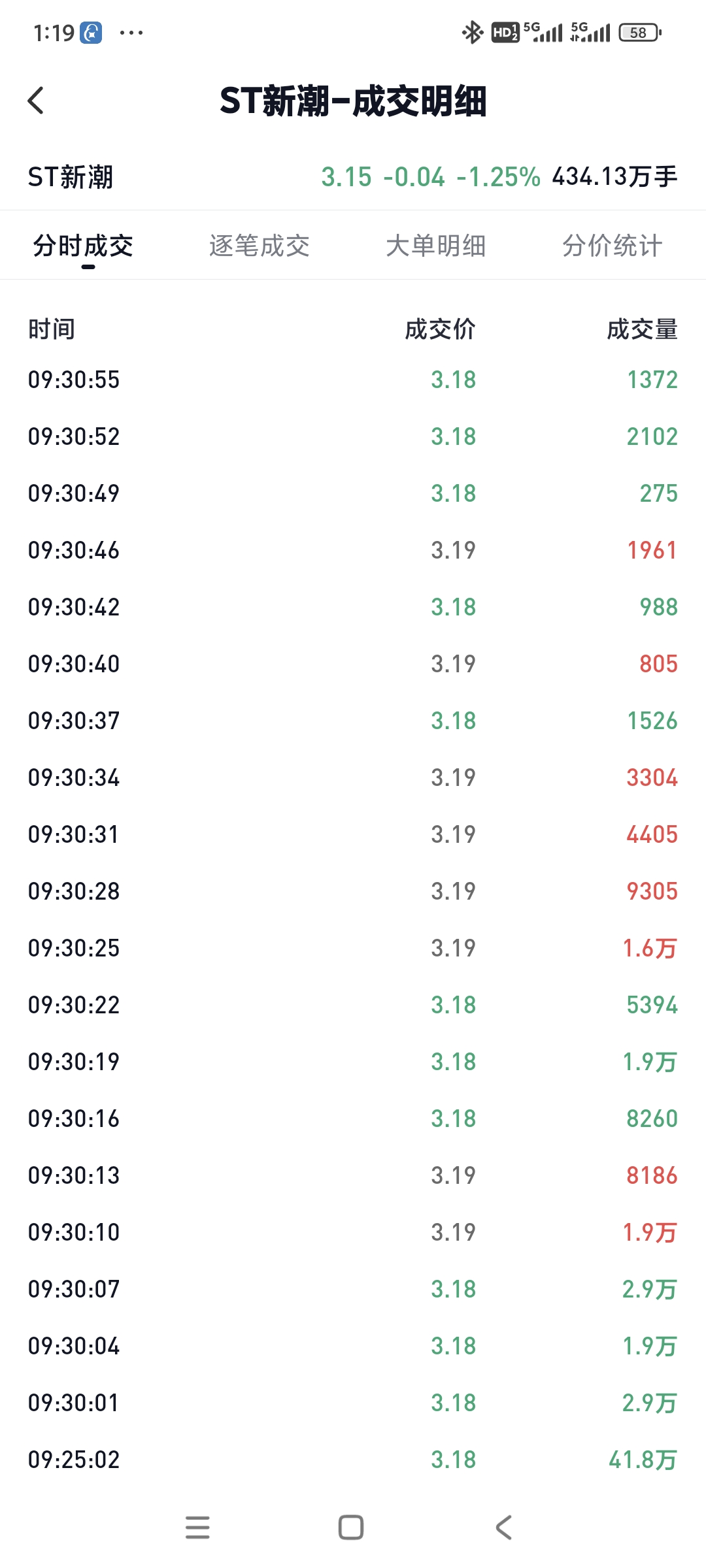 今天股价还没有破3.1,伊泰应该要赢了,明天也没有比3.1低很多就稳了。ST新潮仓位从50%加到63%