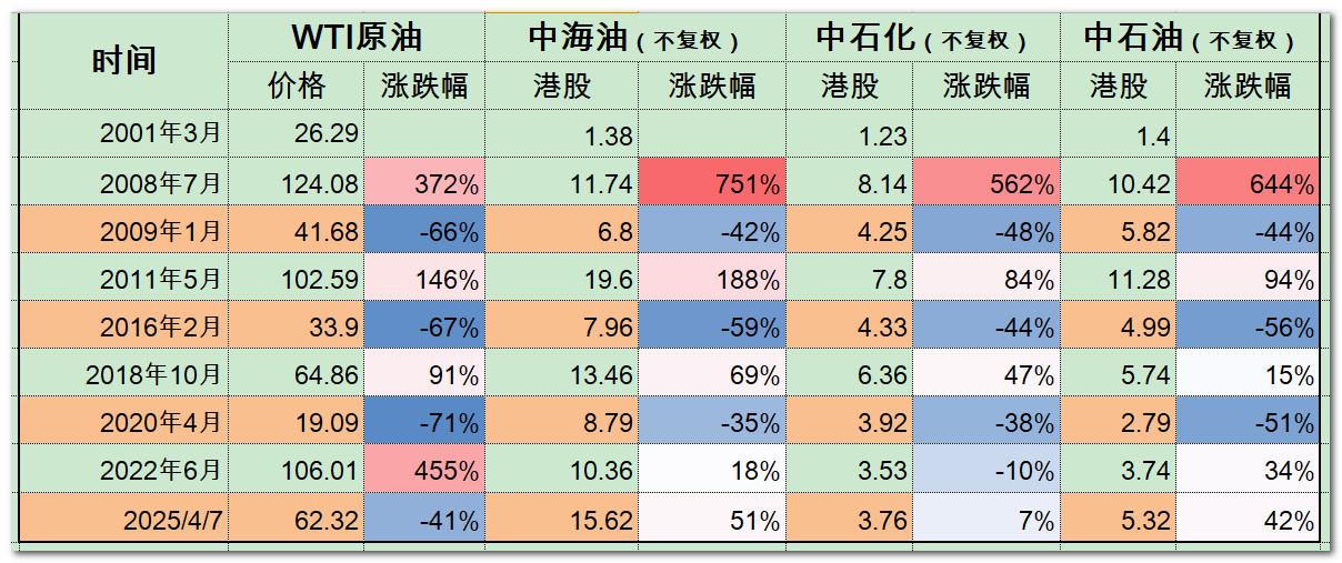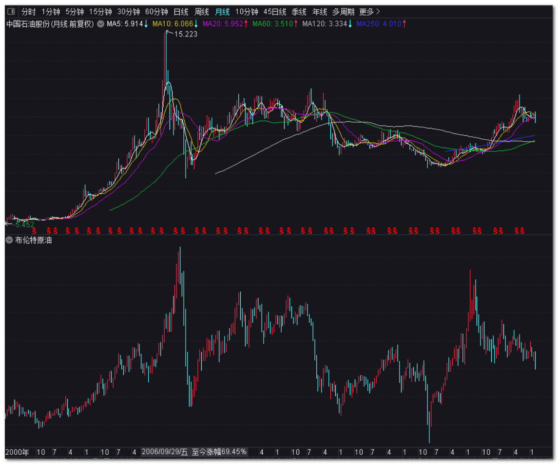 另外,三桶油在国内挂牌上市的时间短,而且不集中,不像三家在港股都集中在2000年前后挂牌交易,可供参考的数据时间长同时起点可达二十四年。