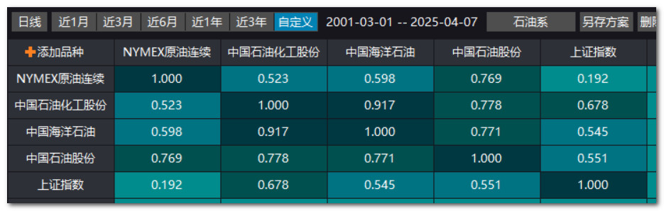 从分析看,原油期货和三桶油的相关度分别是中石油>中海油>中石化>上证指数。