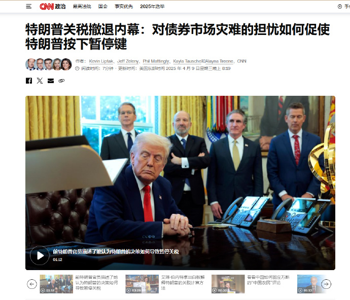 特朗普暂停对等关税90天 中国关税提高至125%