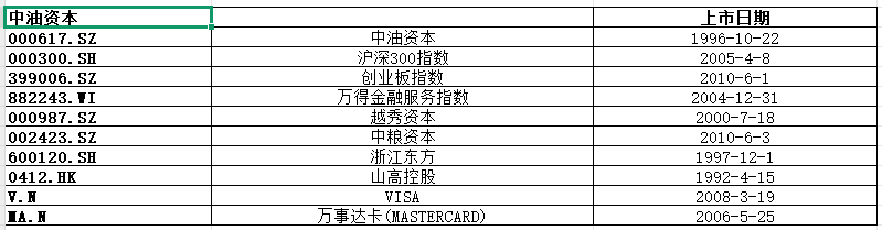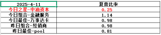 中油资本,基本面可圈可点,历史表现拉胯,目前估值低,颇为鸡肋。整个金融服务行业历史惊艳世人,波动偏大,综合夏普比率非常诱人,建议关注,全球市场看万事达卡,大中华市场看山高控股。(注:夏普比率越高越好)