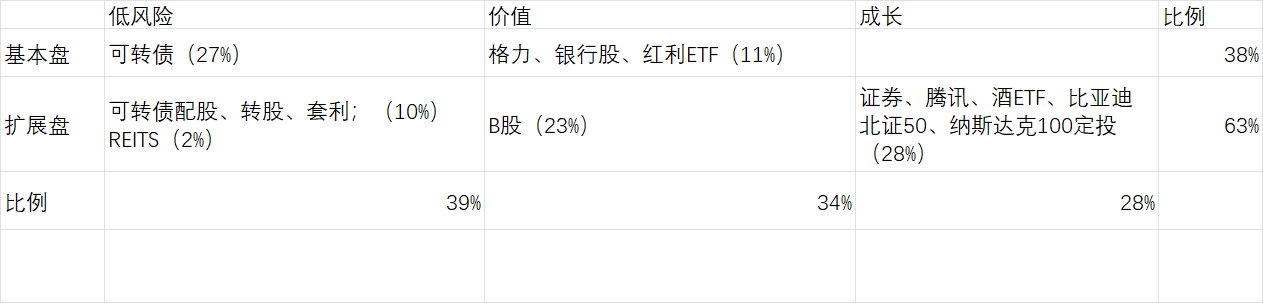 可转债、格力、银行股、红利ETF已经买了10年,我可以相信这个组合应该不会亏损,可以算基本盘了,这部分占比38%。预期收益率10%以上。