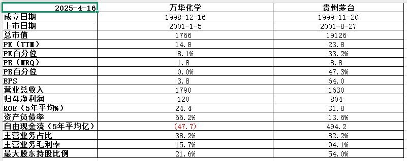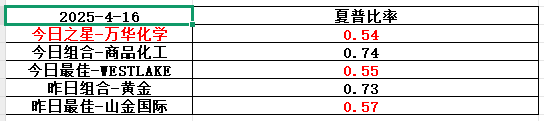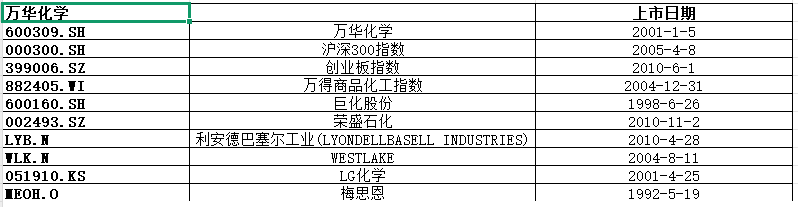 万华化学,基本面喜忧参半,历史表现还行,目前估值低,只能当配置。整个商品化工行业历史表现不错,波动偏大,综合夏普比率没啥竞争力,不建议关注,如果一定要配置的话,全球市场看WESTLAKE,大中华市场看万华化学。(注:夏普比率越高越好)