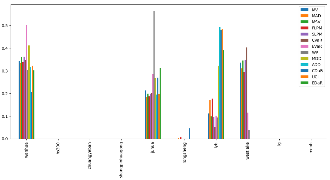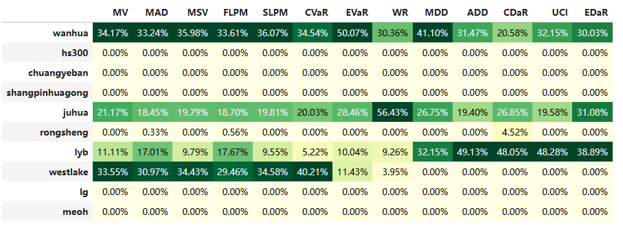 如果换成其他约束,系统给的配置比例也大同小异,基本是在公司和美股的WESTLAKE之间做取舍了。(注:占比越高越好)