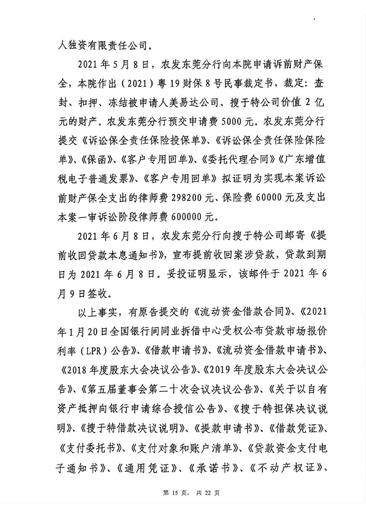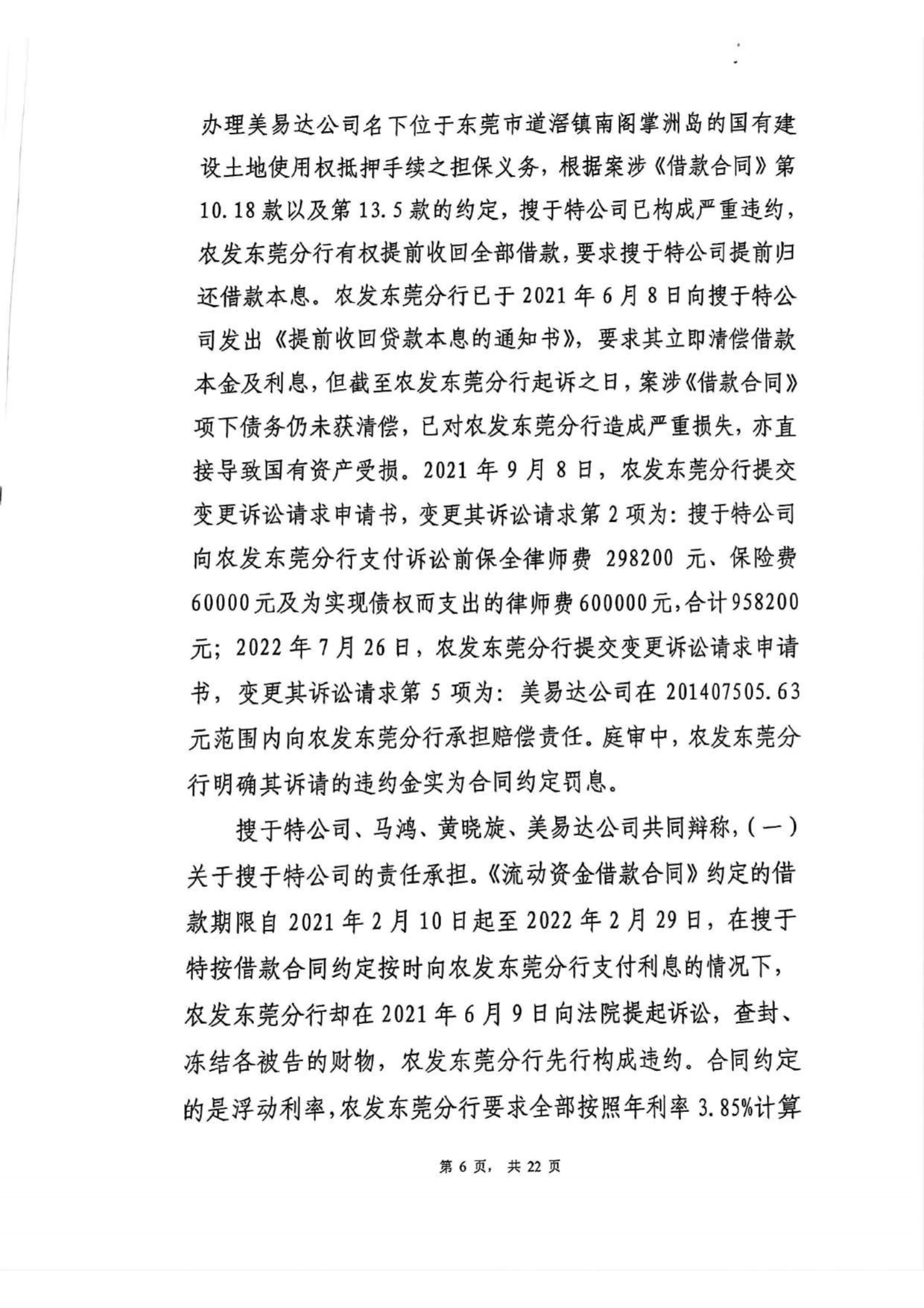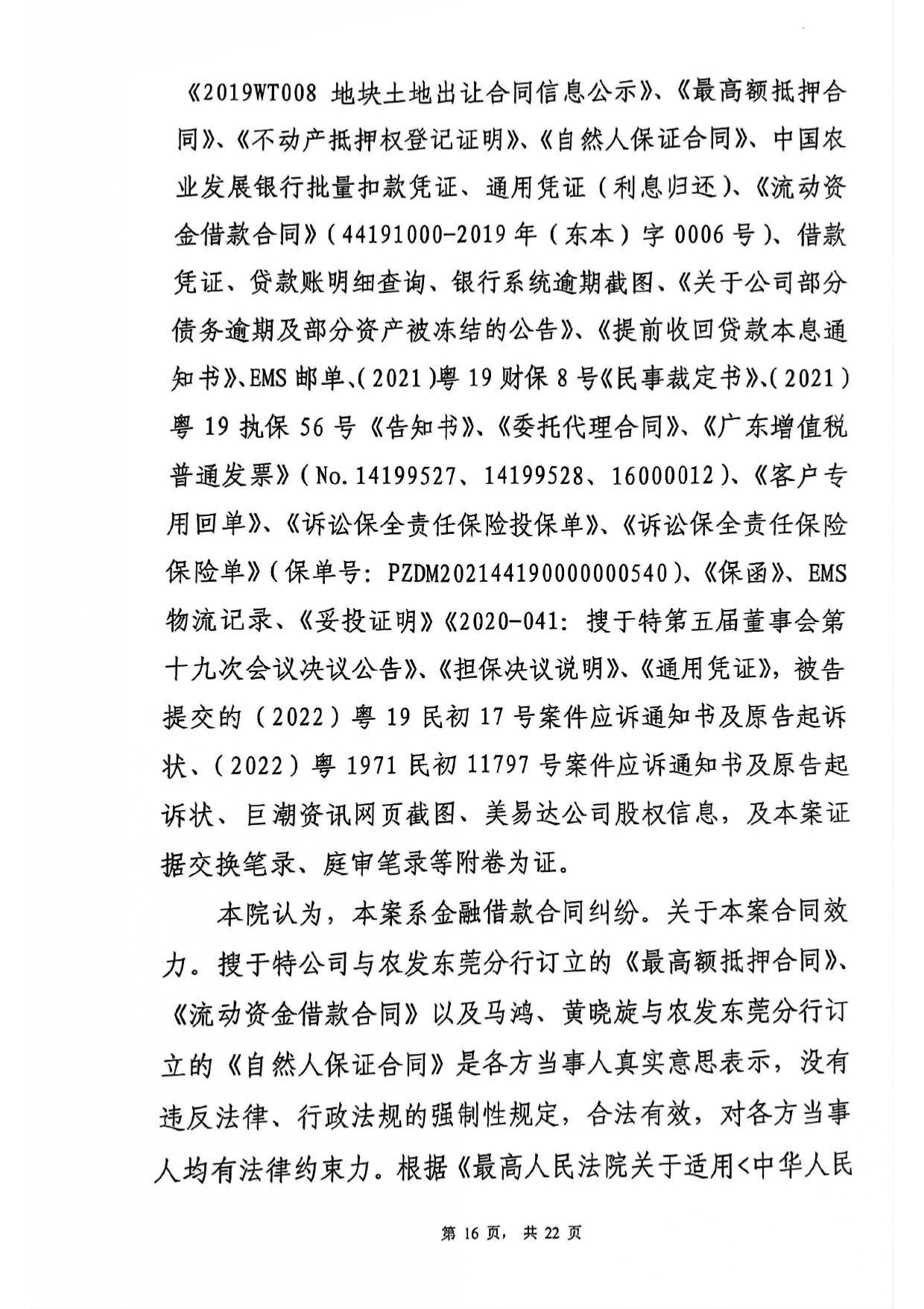 此判决后 搜特转债募投项目所在子公司美易达不服上诉至广东省高院,省高院依然判决 要搜特转债募投项目所在子公司美易达在该土地价值范围内承担赔偿责任!吴砝吴添! 至今 以上2个该判决仍然未见在裁判文书网公开!