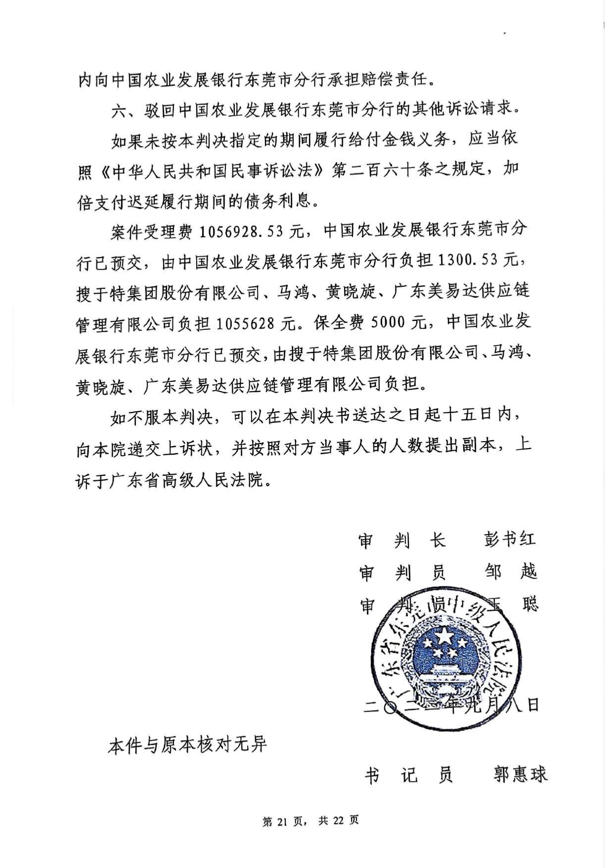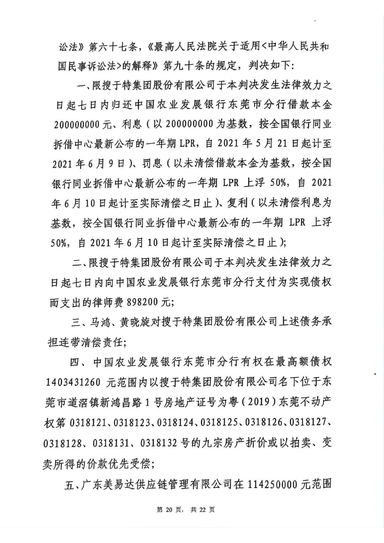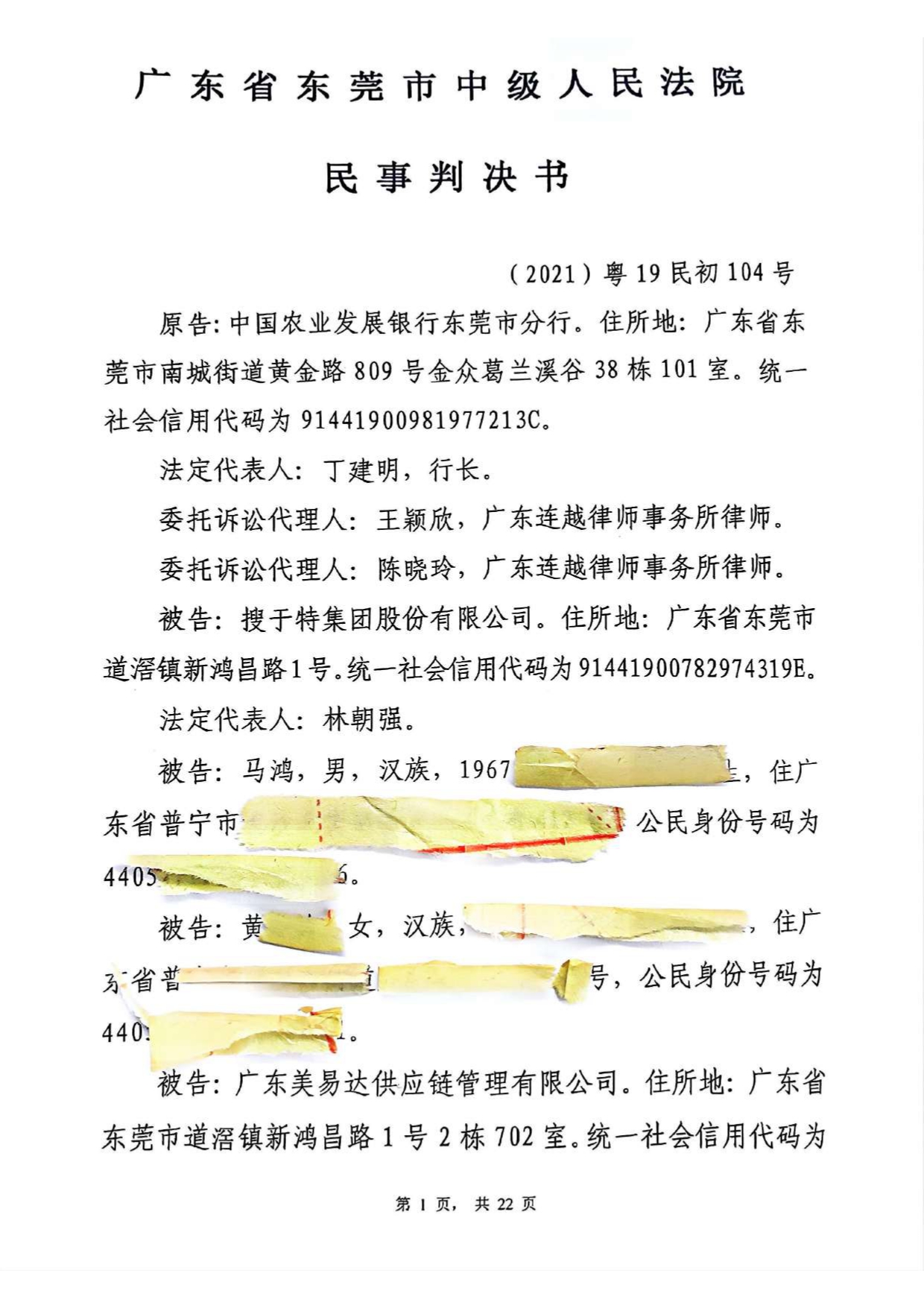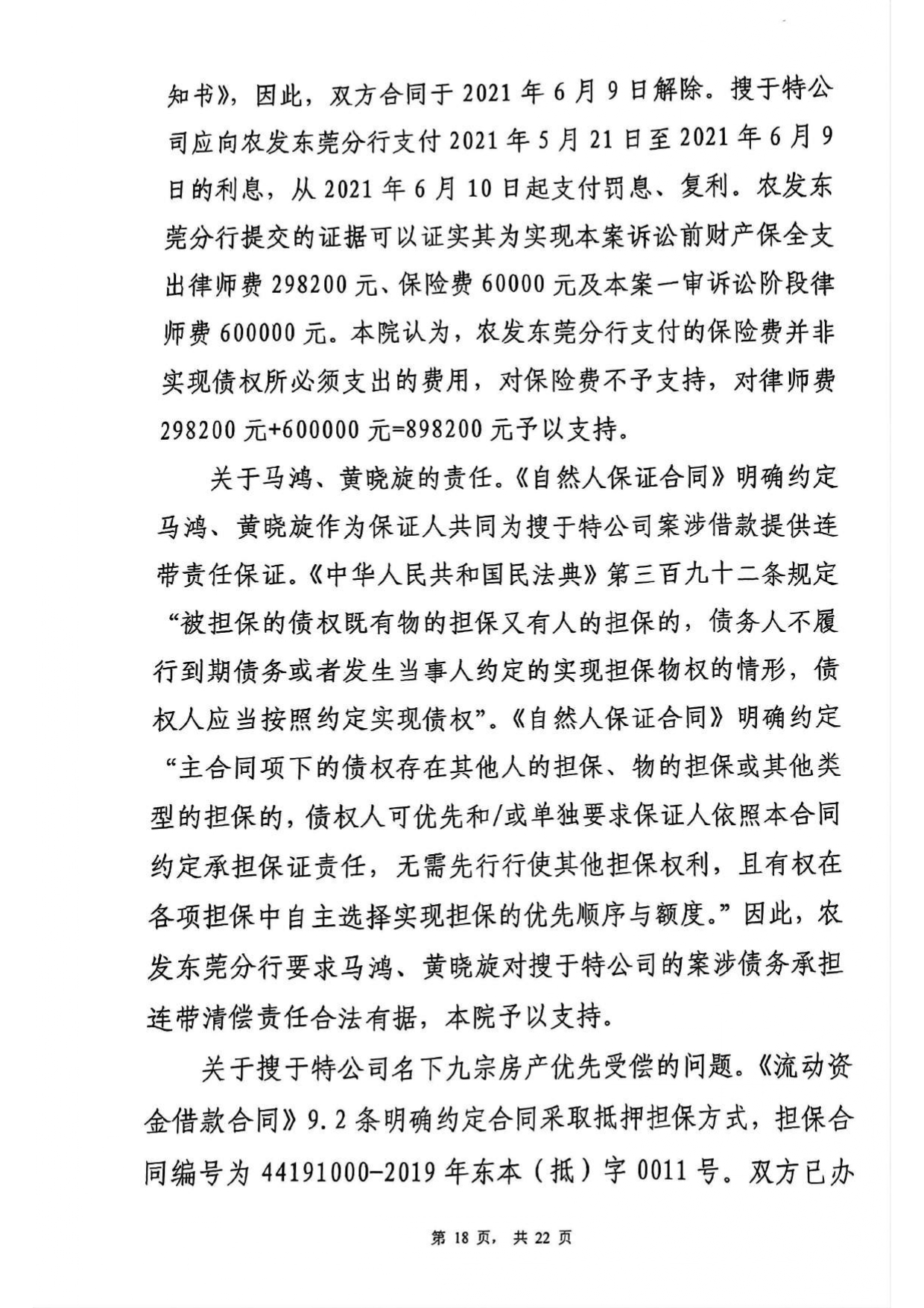 此判决后 搜特转债募投项目所在子公司美易达不服上诉至广东省高院,省高院依然判决 要搜特转债募投项目所在子公司美易达在该土地价值范围内承担赔偿责任!吴砝吴添! 至今 以上2个该判决仍然未见在裁判文书网公开!