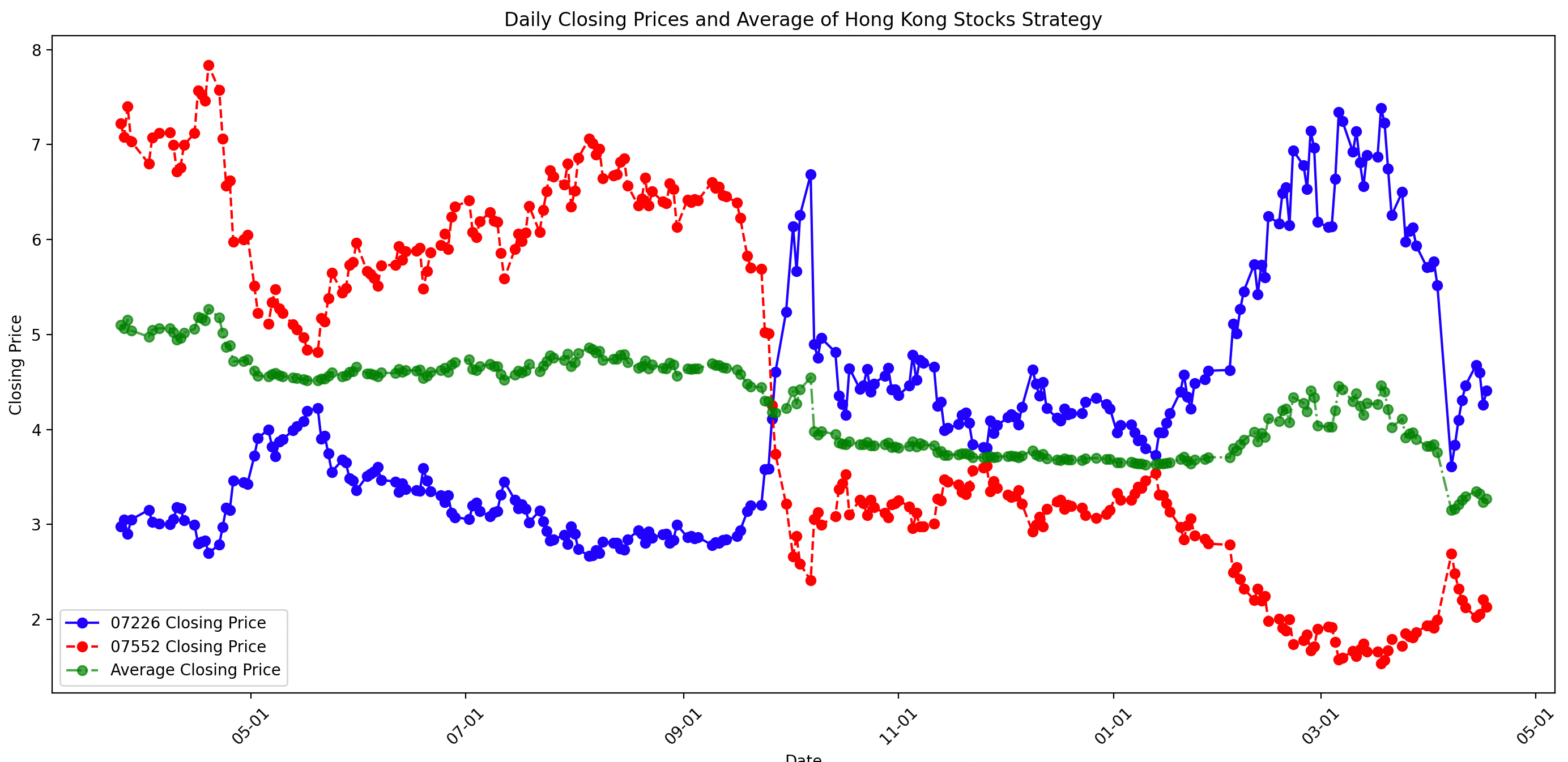 感谢大小愚头指出了这个计算中的致命错误之处,不能用两个价格的平均值来计算。如下计算才是正确的,一年的时间,两倍做空恒科07552从7.2 跌到了2.023,相当于100块变成了28.1块。两倍做多恒科2.95涨到了4.56,相当于100块变成了154.6. 那我一年前这两个各买入100块,现在就是182.7块。200到182.7跌幅为8.65%。