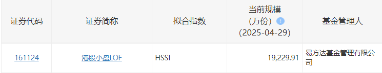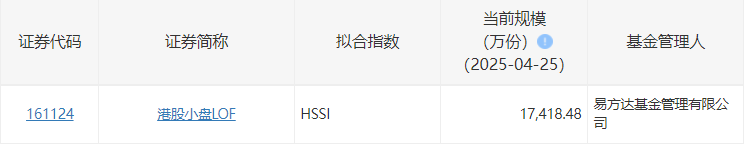 2025年4月30日,港股小盘LOF成交量2.51万手,成交额247万元。