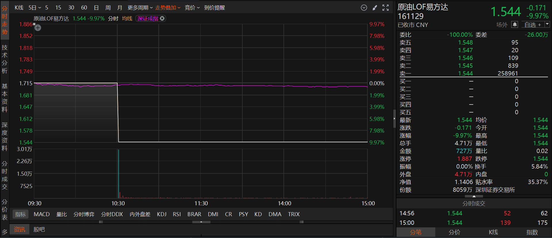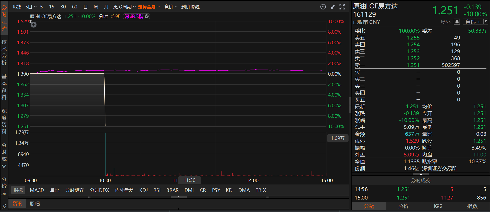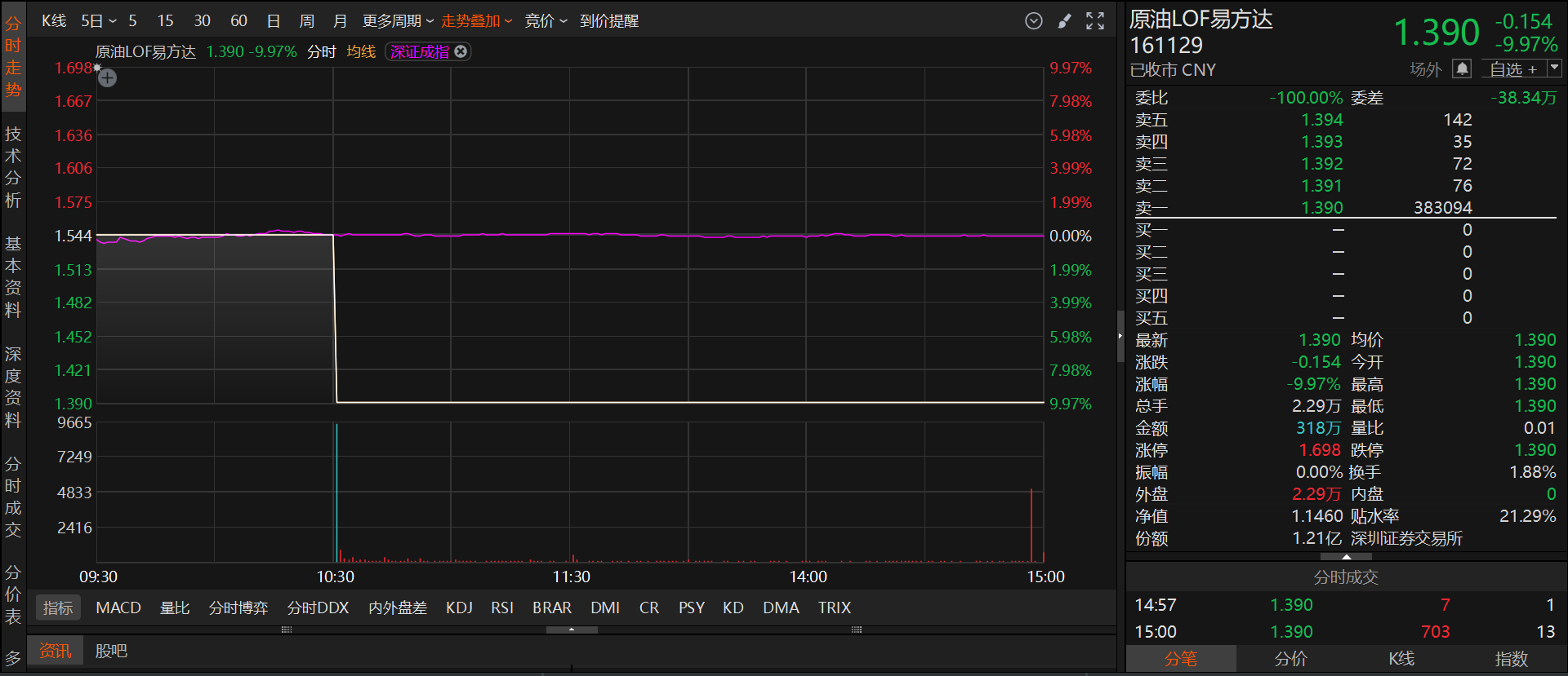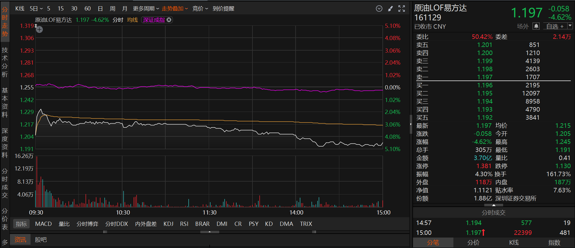 2025年4月29日,原油LOF易方达成交量2.29万手,成交额318万元。