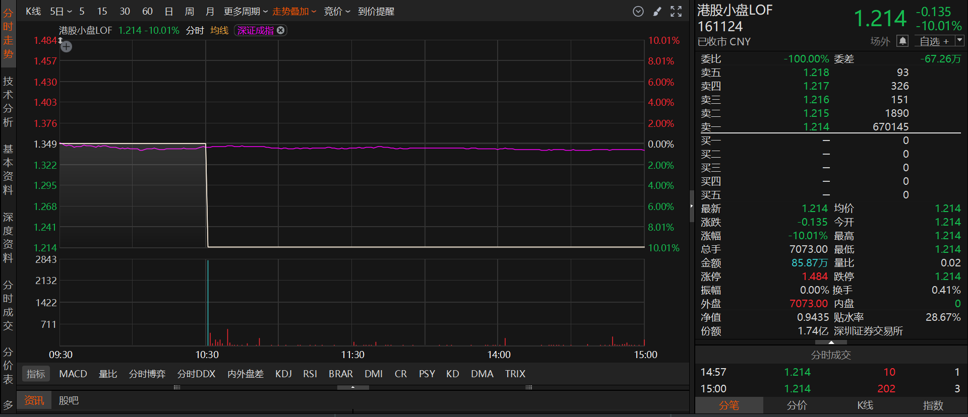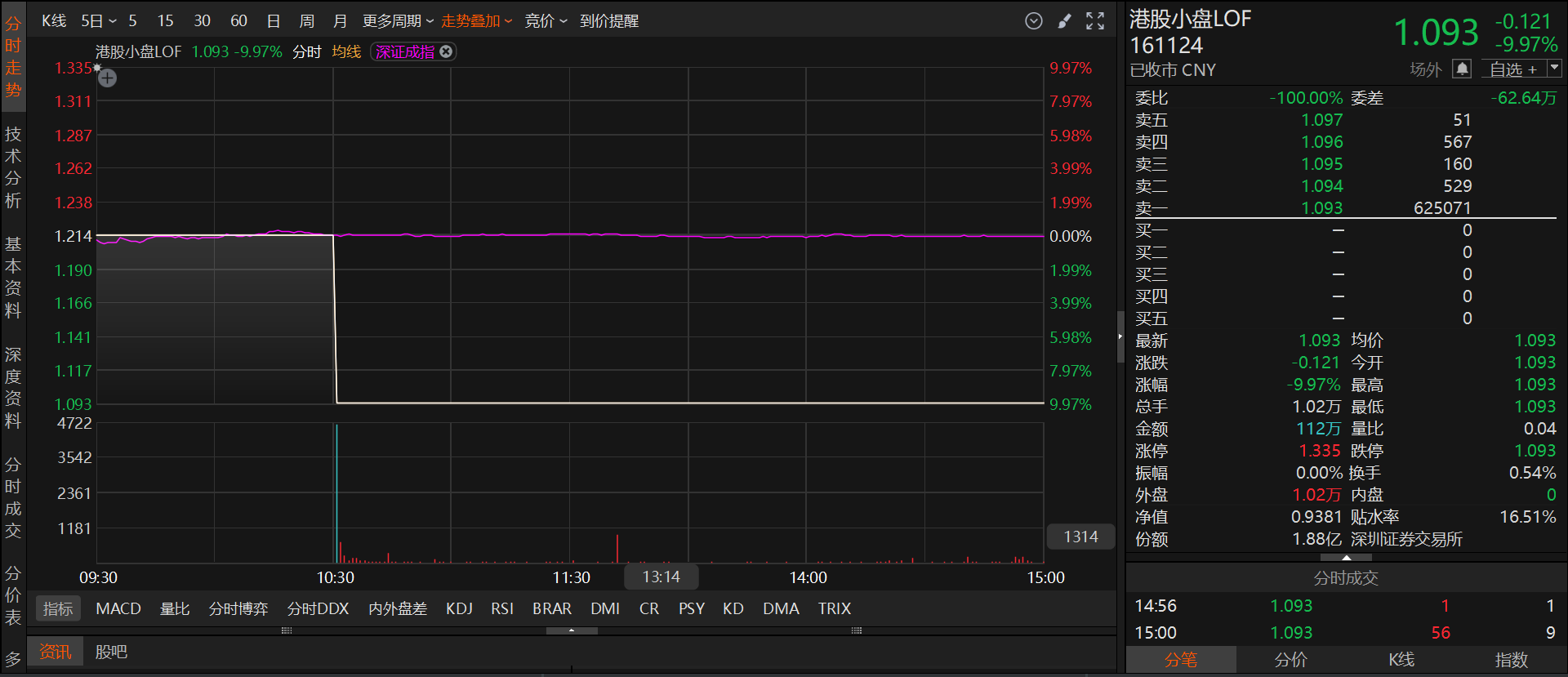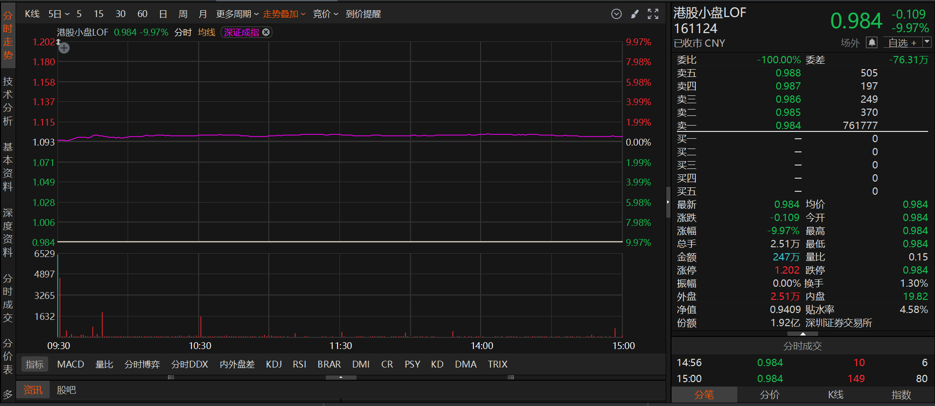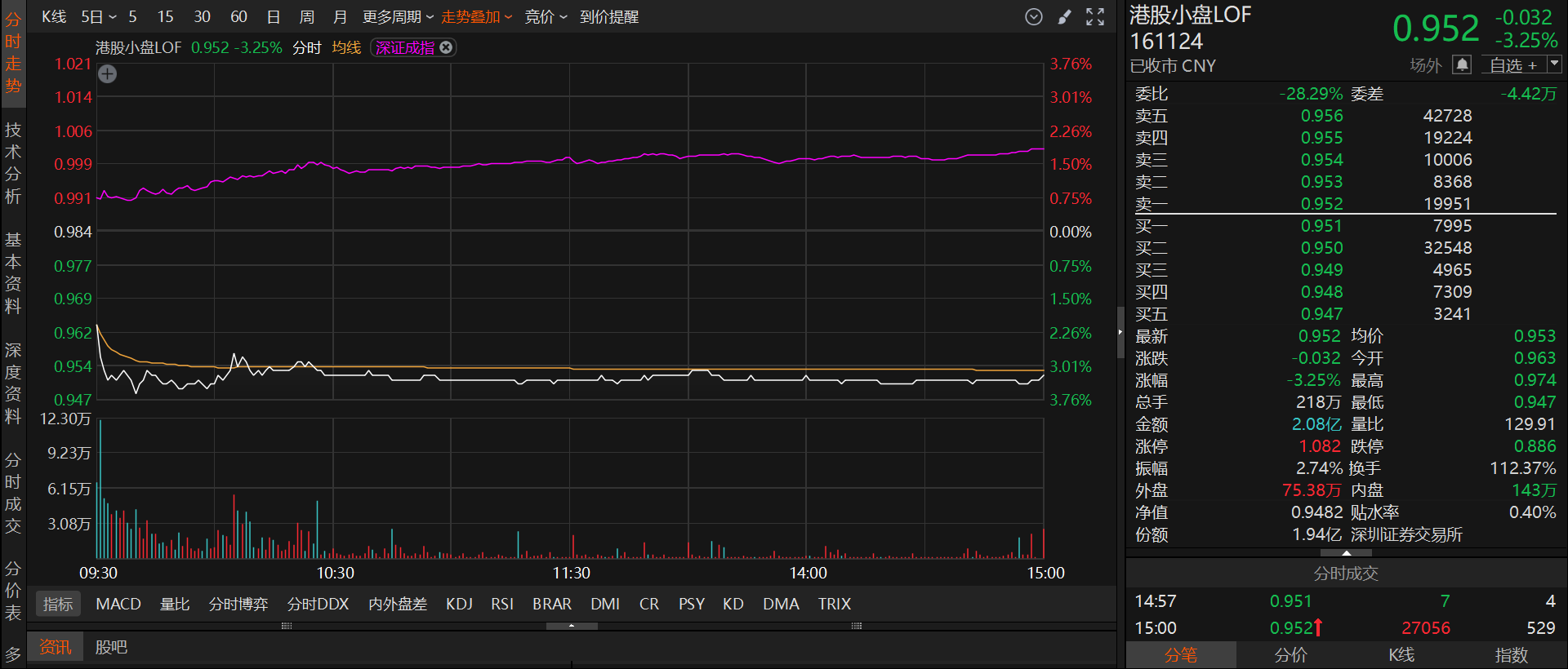 2025年4月29日,港股小盘LOF成交量1.02万手,成交额112万元。