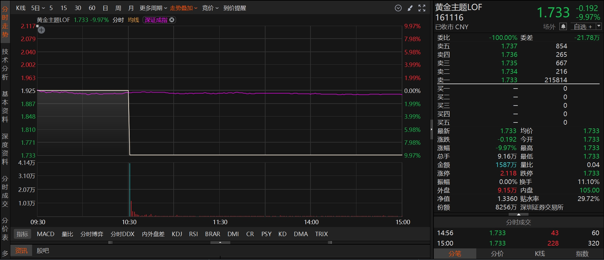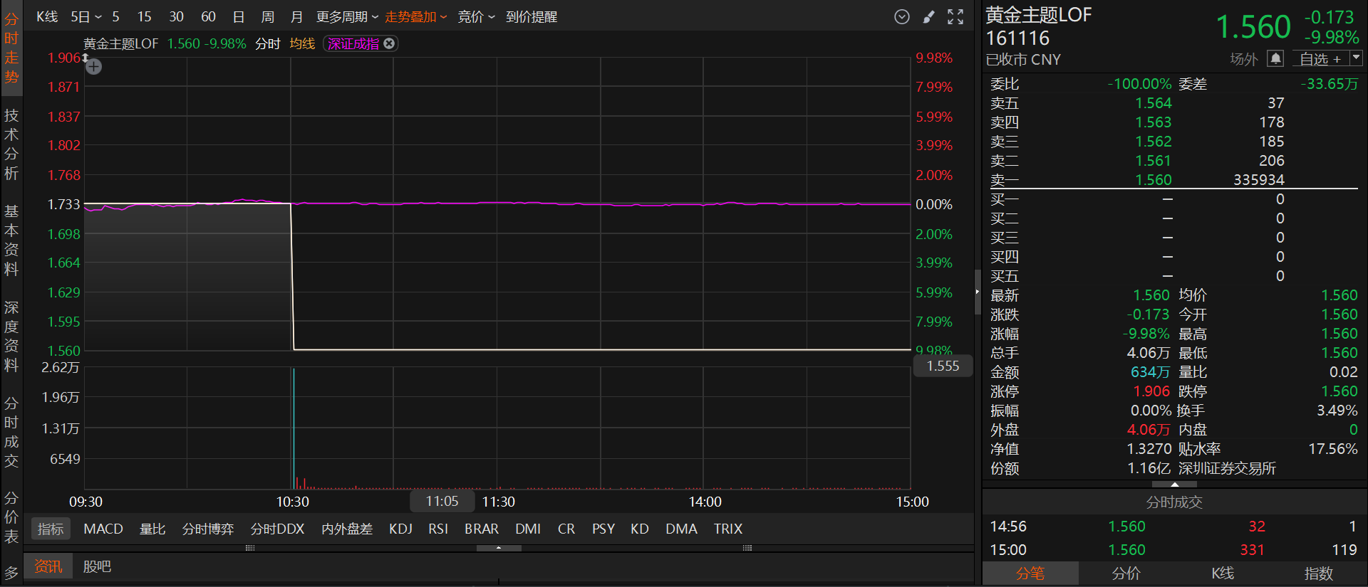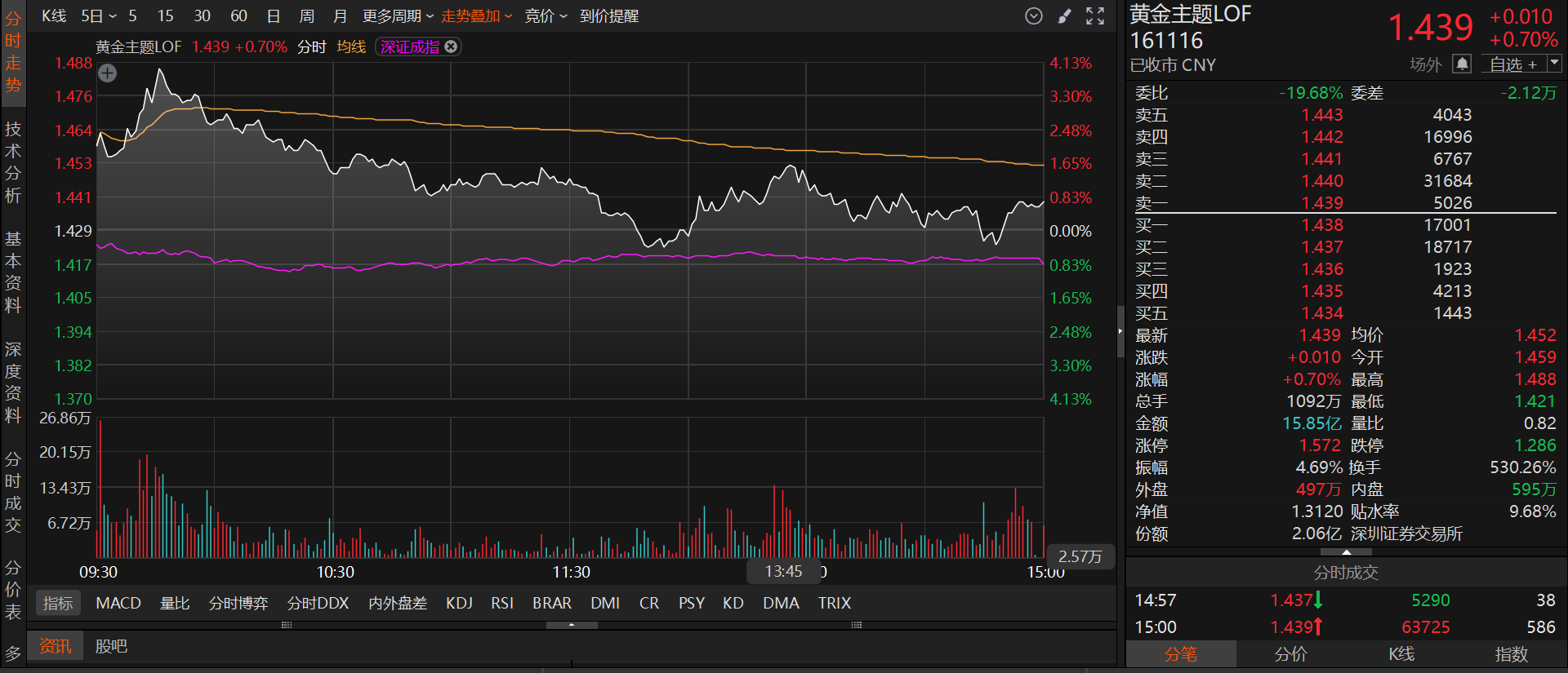 2025年5月6日,黄金主题LOF成交量607万手,成交额8.70亿元。