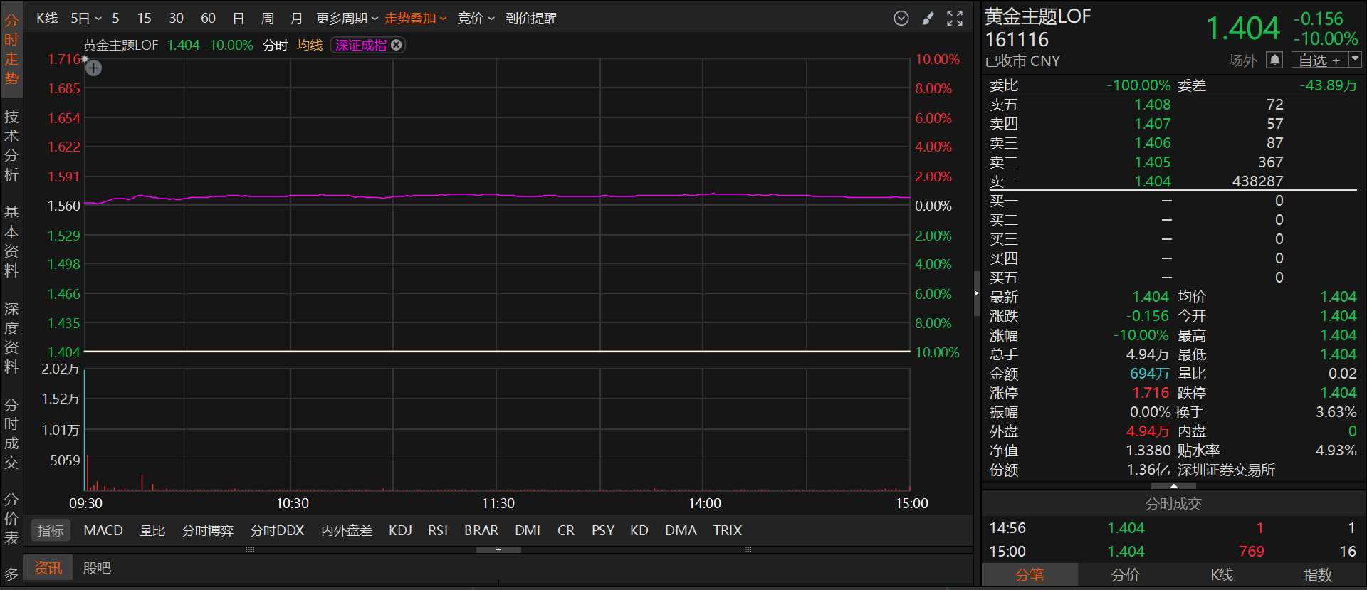 2025年4月30日,黄金主题LOF成交量4.94万手,成交额694万元。