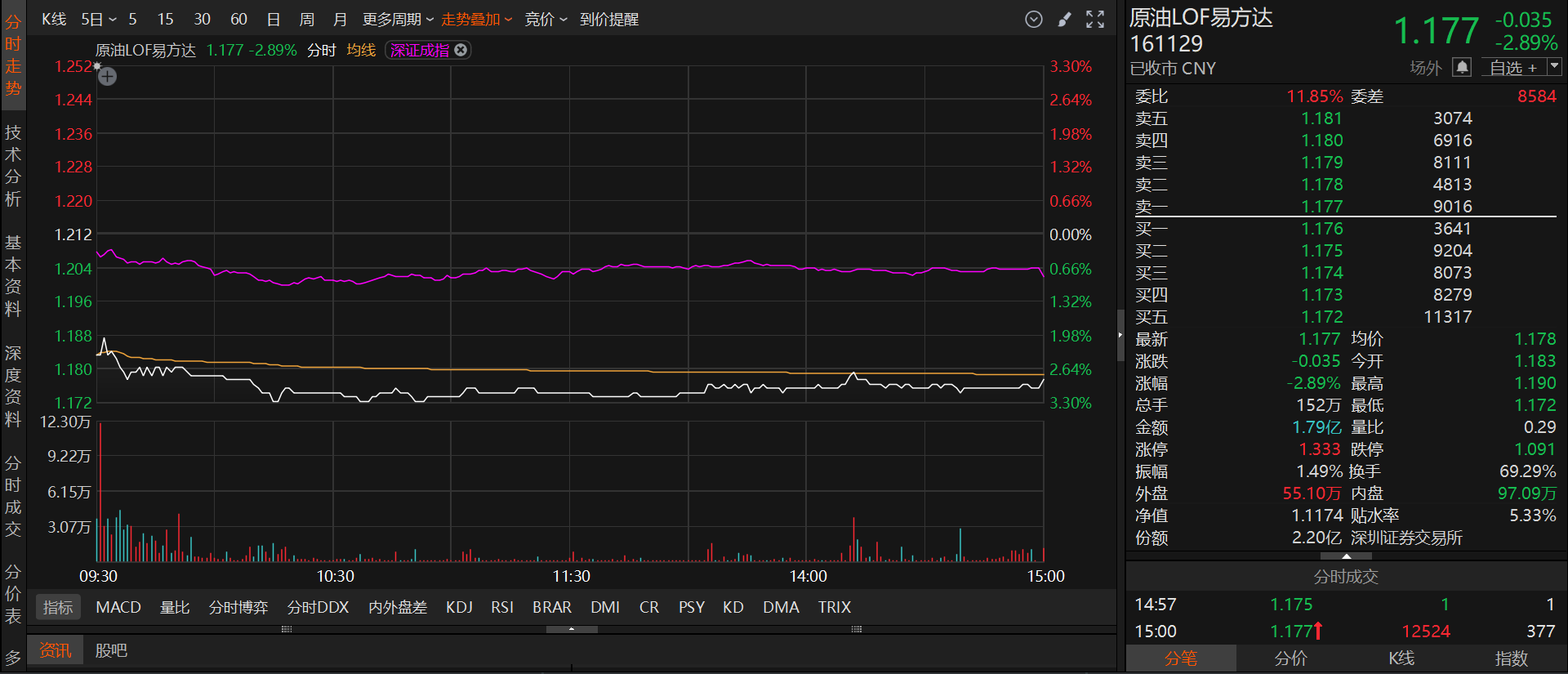 2025年5月6日,原油LOF易方达成交量677万手,成交额7.89亿元。