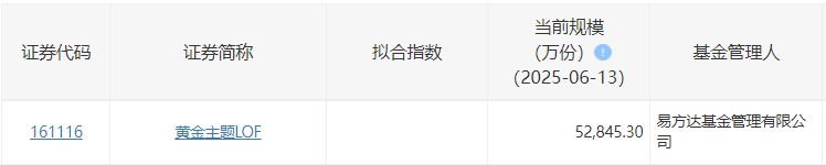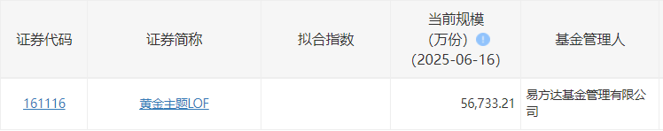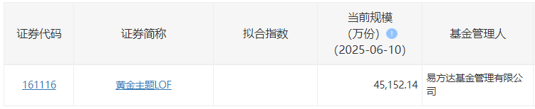 2025年6月5日,黄金主题LOF场内规模33,362.57万份,新增4789万份,相当于10.6万辆拖拉机申购。