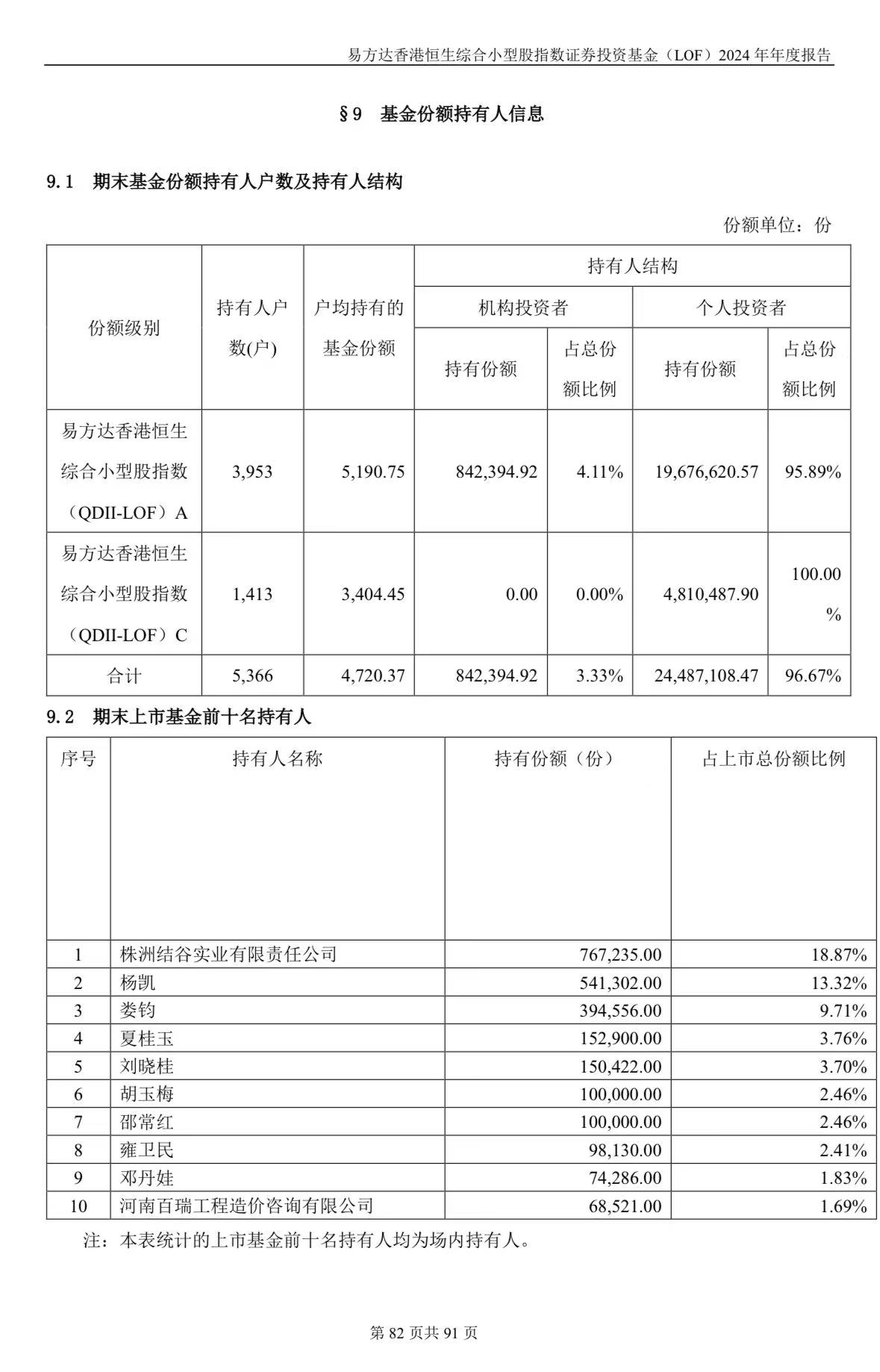 2024年末,港股小盘LOF持有人5366户,户均持有4720份。